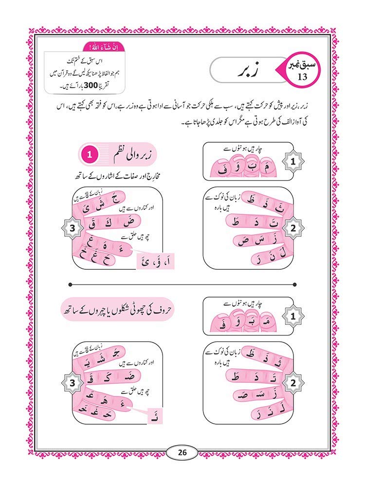 Understand Al Qur’an Academy has developed five courses to learn Qur’anic Arabic from beginner to advanced. These courses help build a strong foundation of Qur’anic Arabic and understand the Qur’an – the easy way. They are most suitable for busy people who love to jumpstart into learning Qur’anic Arabic, the easy way. Read Quran: This book contains the Arabic alphabet, the Vowel Signs (Harakaat), and the Rules of Tajweed. The most important features of this book are: (i) It covers those words that occur 40,000 times (50%) in the Qur’an; (ii) Letters are taught in the order of particulation (مخارج) so that non-Arabs learn it thoroughly; All the letters are arranged on fingertips, arranged in groups, using a rhyme as well as actions that represent attributes; (iii) The lessons are taught in the order of simple to challenging; (iv) Logic behind the rules is given in simple terms so that students learn the rules with conviction; and (v) As a part of built-in Tajweed strategy in all the lessons, the lesson on Sukoon is split into 6 parts and that of Shaddah into 3 parts.