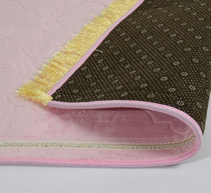 Rectangular Velvet Janamaz Mat | Prayer Mat/Meditation Janamaz for Namaz/Meditation Mat/Muslim| Size 70x110cm | Washable Soft Prayer Mat (Pink)