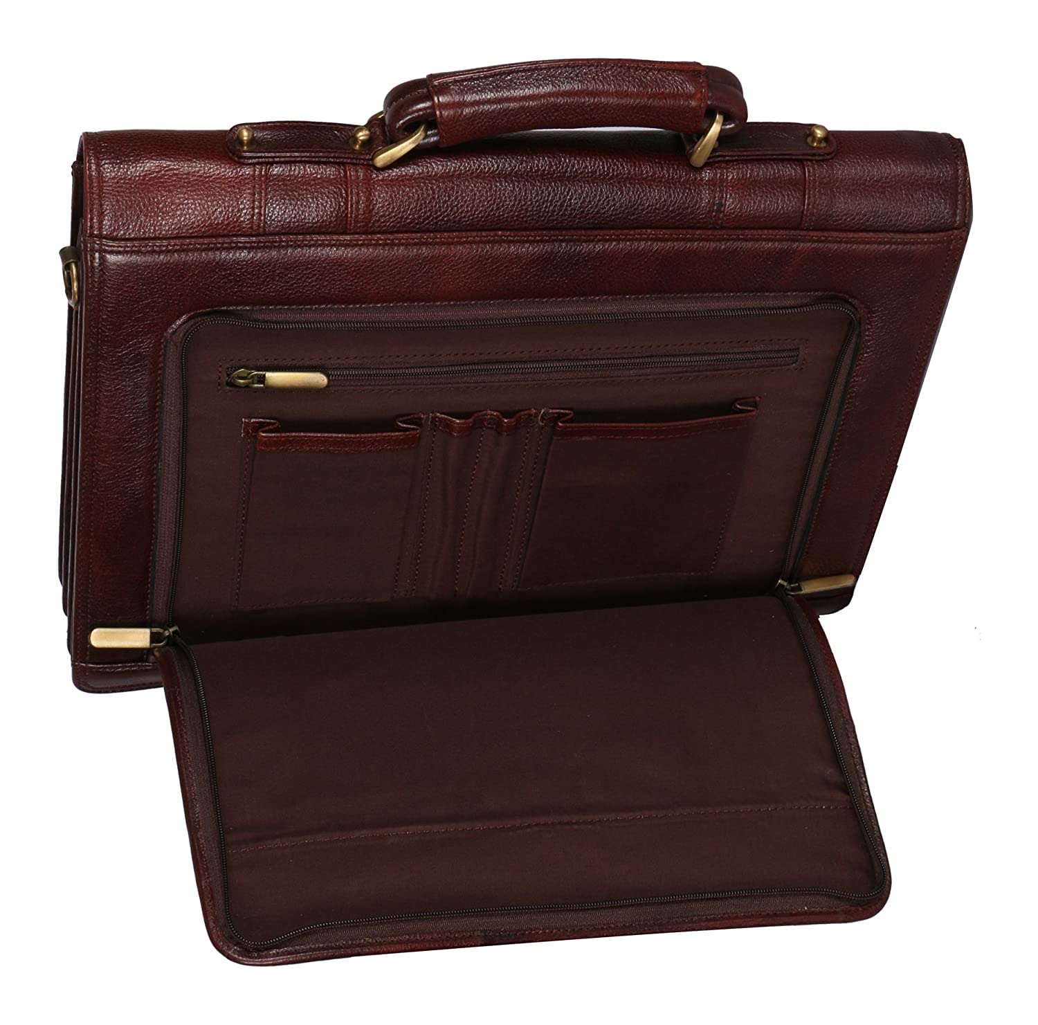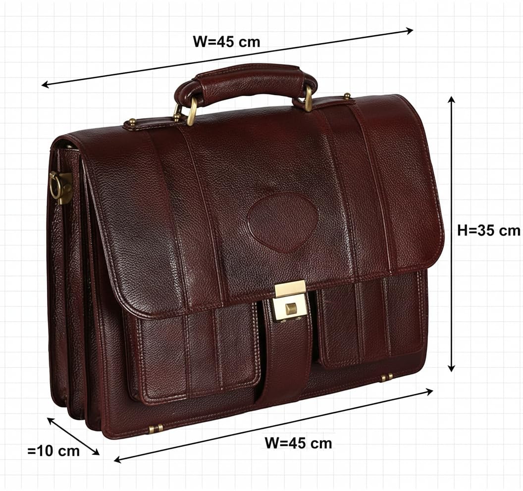Red Cherry Premium Genuine Leather Office Bag for Men & Women | Single Handle Business Briefcase with Laptop Compartment, Multiple Pockets for Documents & Daily Essentials | Brown