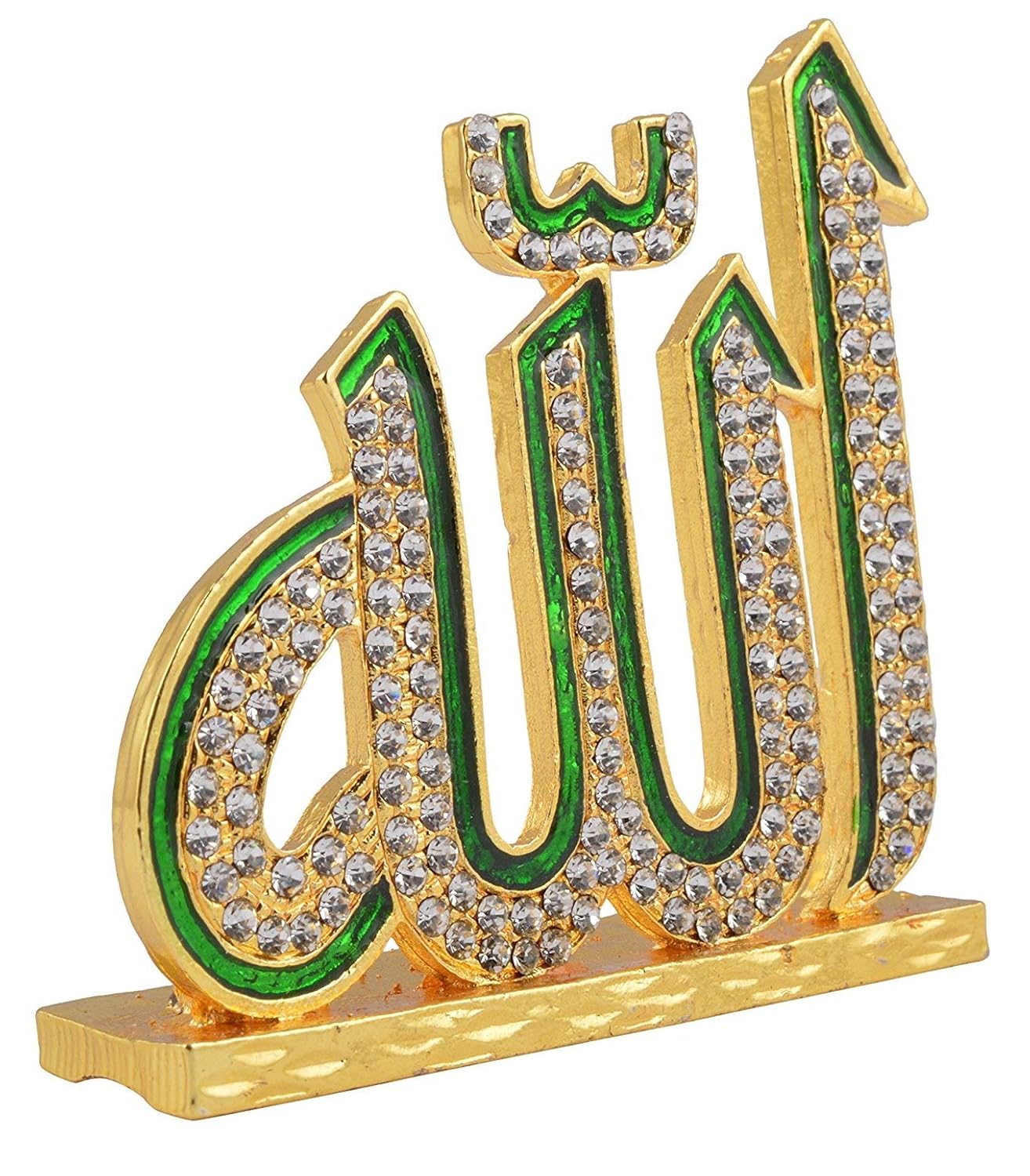 Relicon Islamic Religious Symbol Allah Idol (R-88) Green Gold Metal Statue for Car Dashboard | Home Decor | Office Table Showpiece (L*B*H-6.2 x 0.4 x 6.2 Cm)