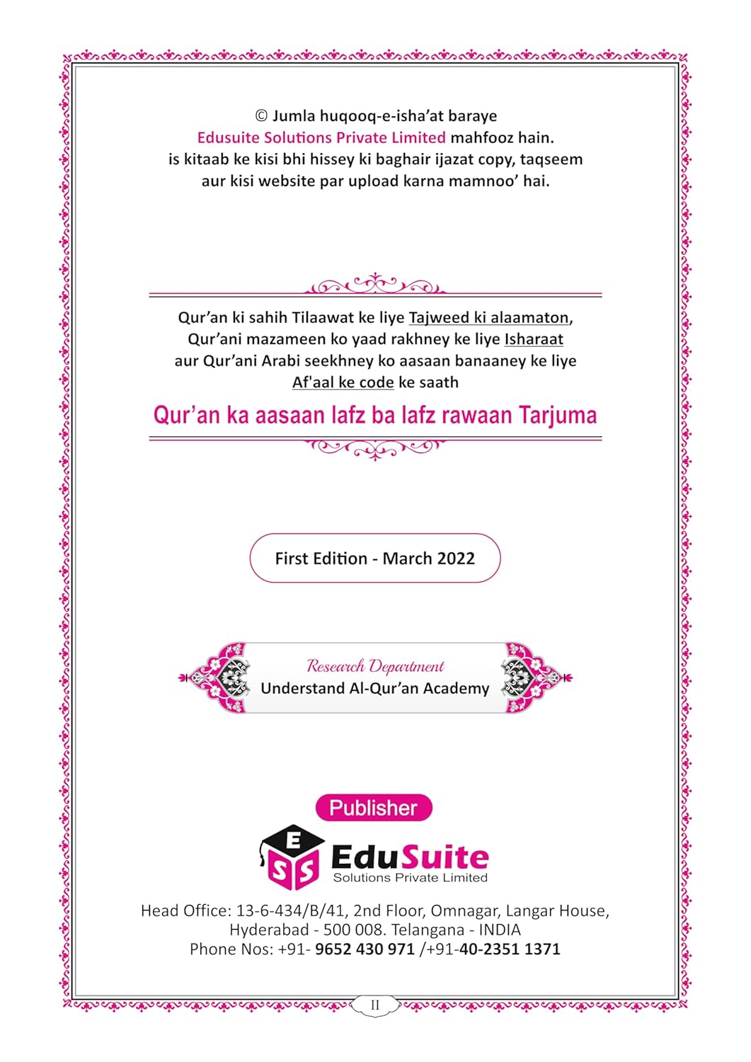 Roman Quran Phrase Wise Translation in 2 Volumes