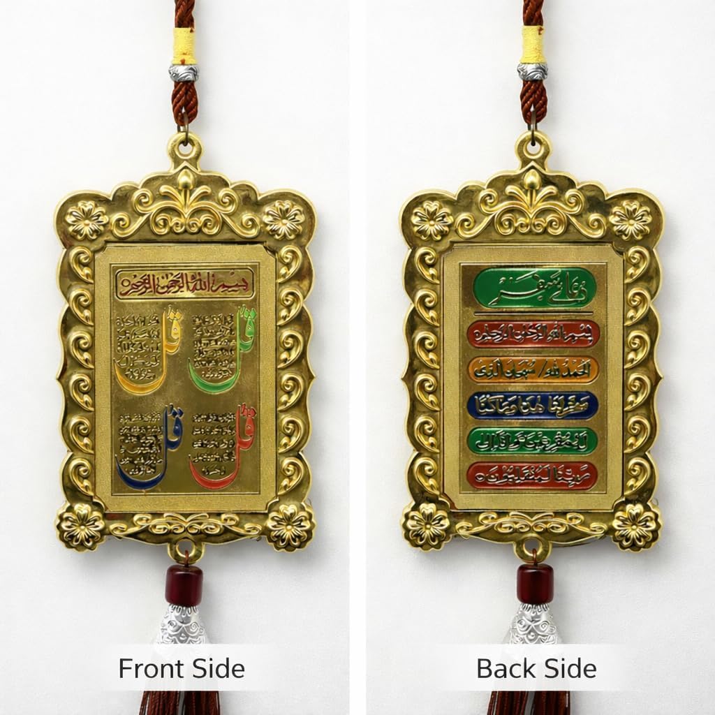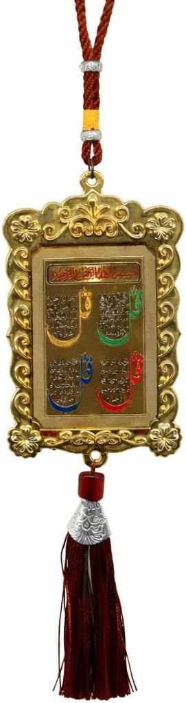 RSINC Islamic Wall,Car Hanging Ornament, Gold Frame with Arabic Calligraphy, Four Quls Surah, Decorative Tassel, Religious Home Decor