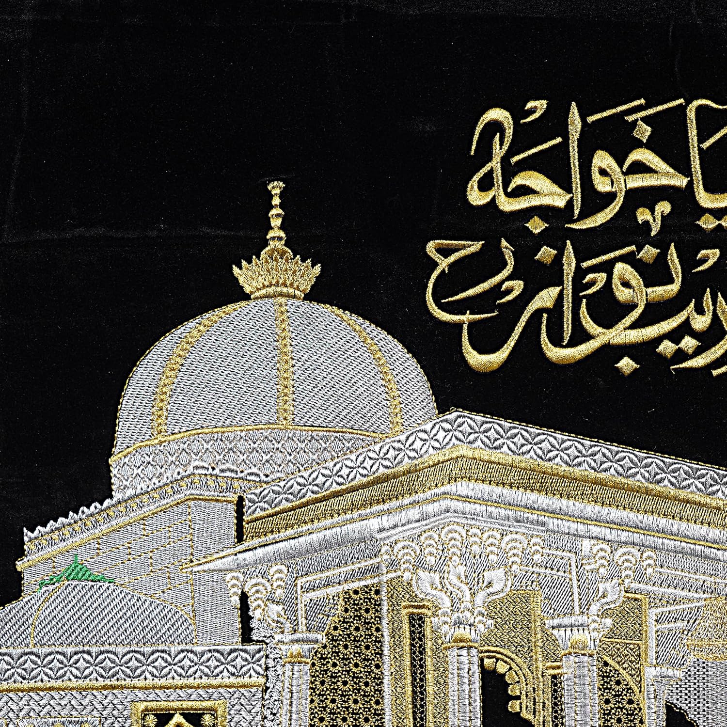 SAJJADAH ARTS Islamic Premium Wall Hanging Ya Ghaus Azam Madina Kaaba Embroidery | Velvet Polyester Arabic Calligraphy Decorative Frame | 22 x 31 cm Spiritual Wall Art for Prayer Room Home Decor;SAEMB-H22xL31CM-0021