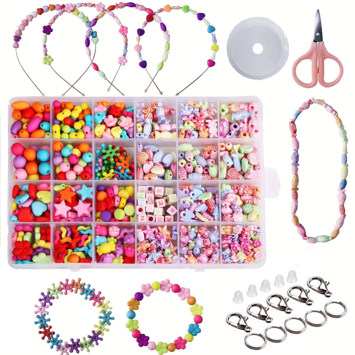 【Jewellery Making Kit for Kids】This bead set has different shapes, sizes and colors and plus beading tools, they all stored in a clear bead storage box (includes 570PCS of beads, 2 headbands, 1 roll of 10-meter string, 1 pair of scissors, 1 tutorial, 5 clasps and 5 rings). It is an ideal toy for girls aged 5 to 12. Because the beads can be strung into necklaces, bracelets, headbands, jewelry or key chains. It is perfect as a birthday gift for girls aged 5-12