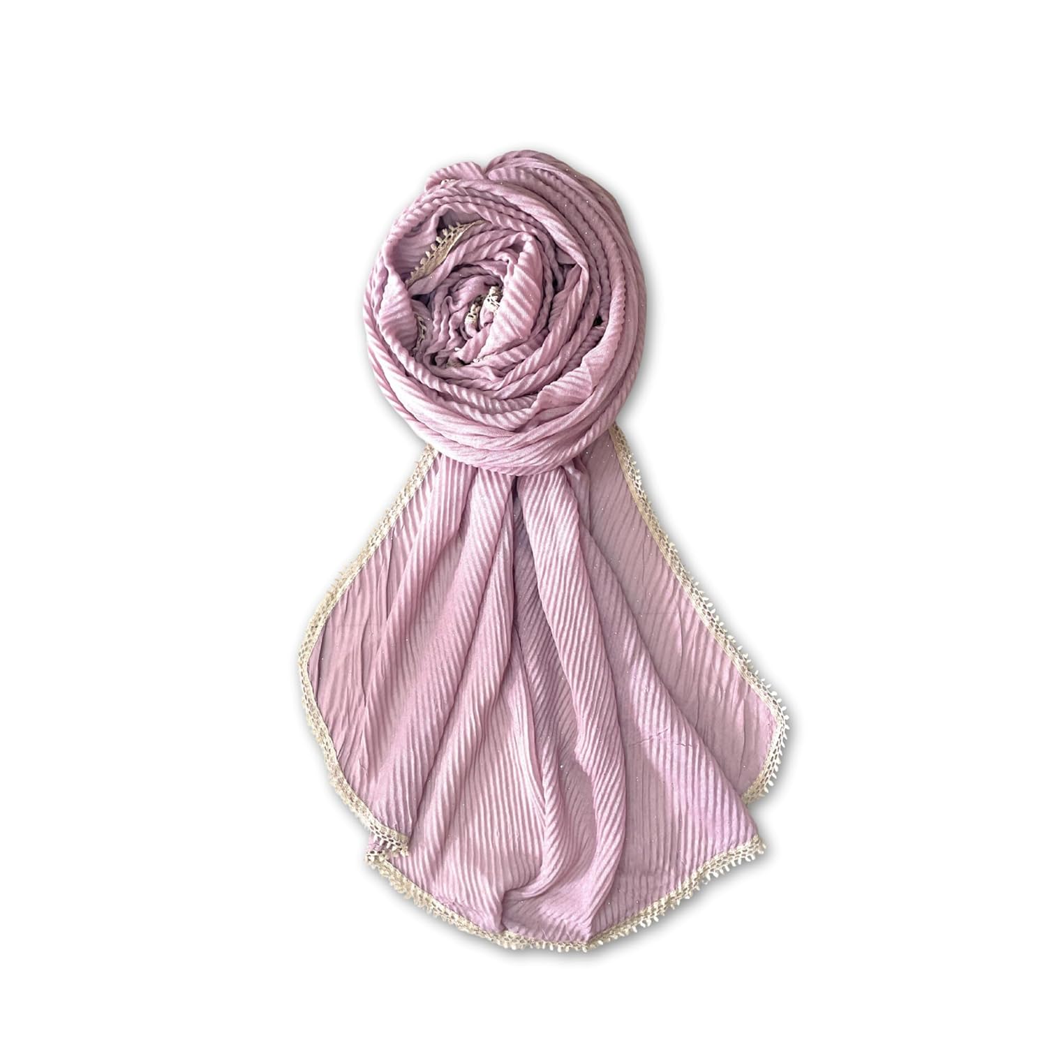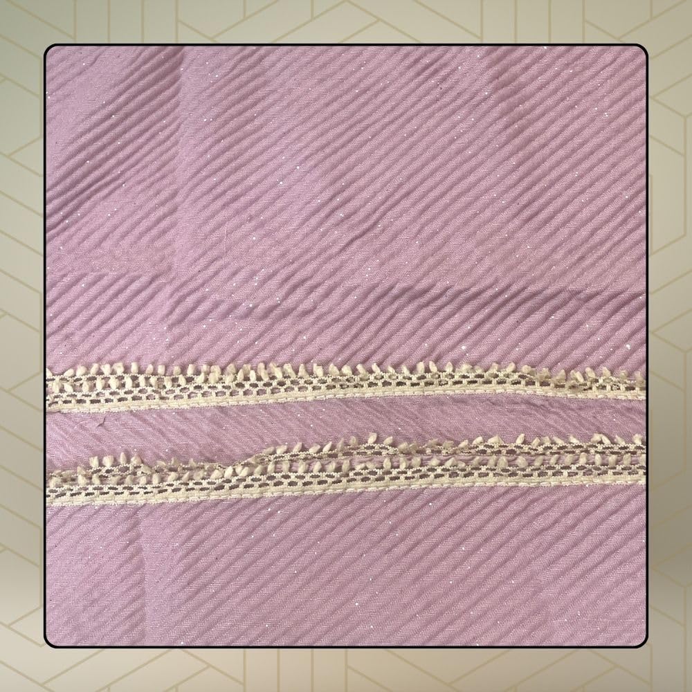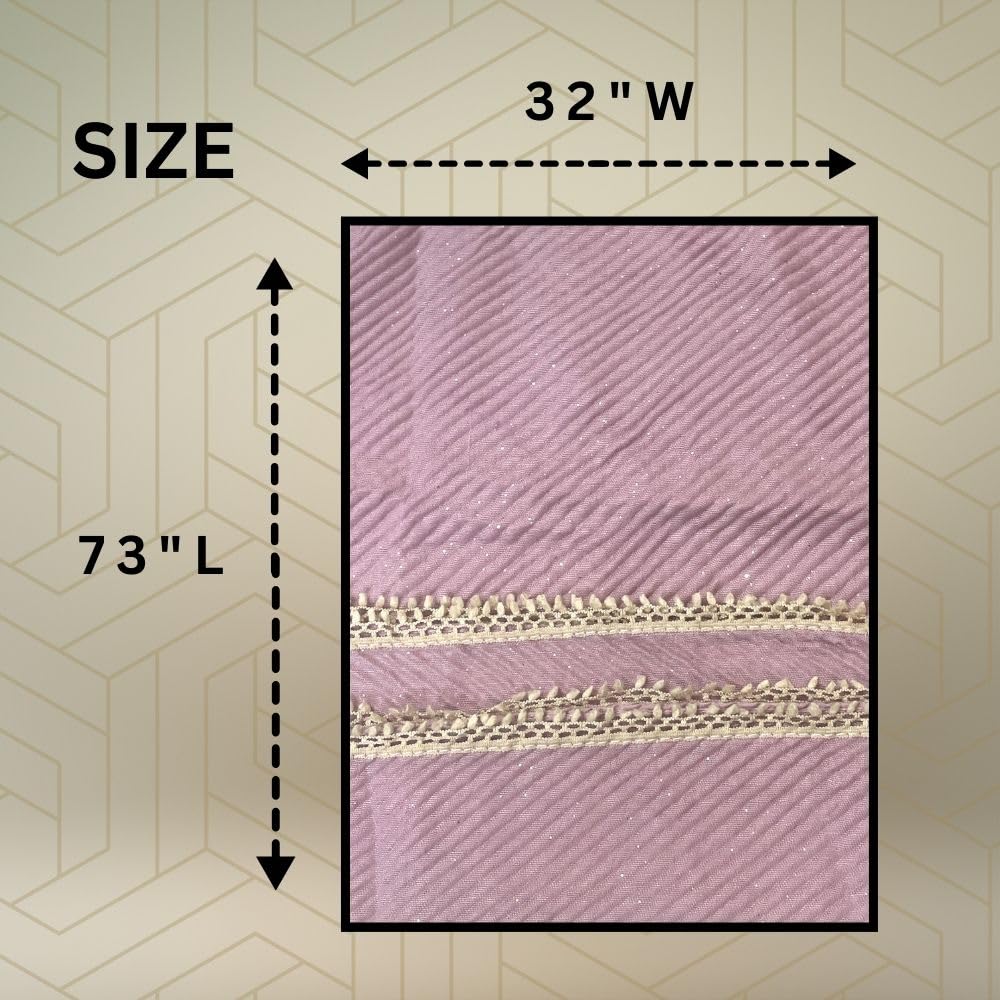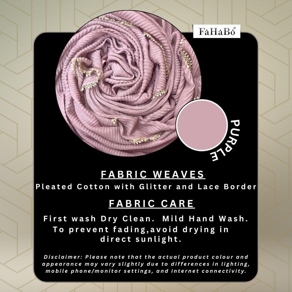 Scarf for Women Stylish Pleated Cotton with Glitter and Lace Border | Hijab Scarf | Stole | Soft, Lightweight, and Latest Scarves | 73 x 32 Inches