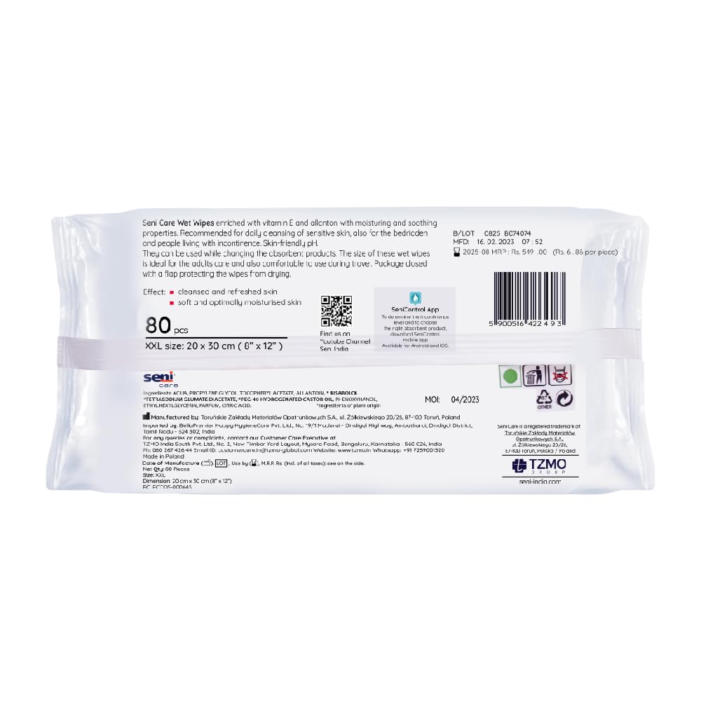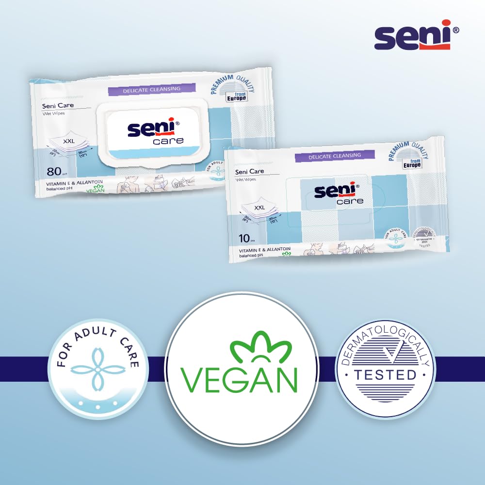 Seni Care Premium Wet Wipes for Adults | 80pcs | Derma tested | Vit E & Allantoin Nourishment | pH Balanced | Skin Friendly