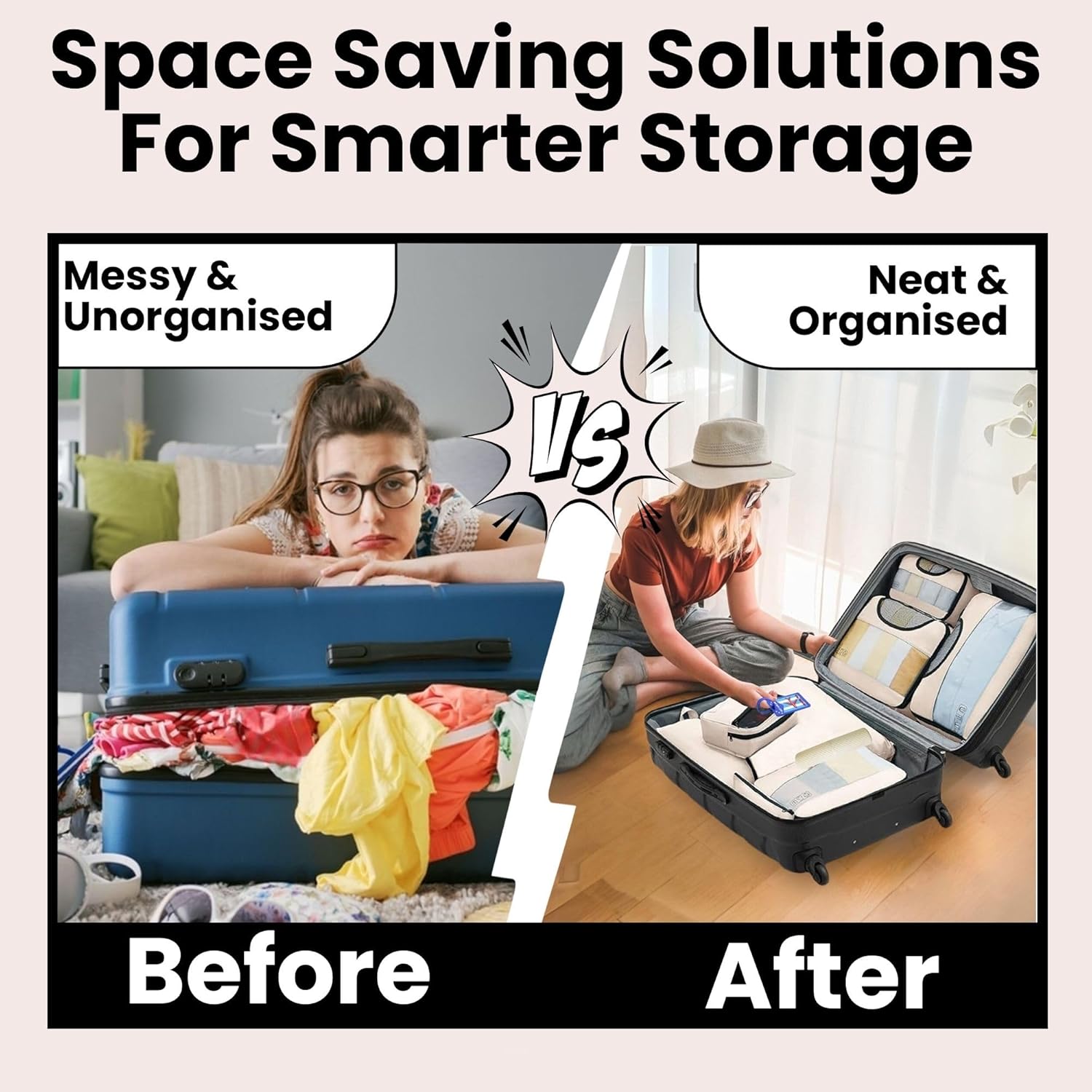 SPACE-SAVING ORGANIZATION: The cubes are designed to fit perfectly inside your luggage, helping you make the most of your suitcase space. Store your clothes, shoes, toiletries, and accessories in an organized manner, eliminating the need to dig through your bag for essentials.