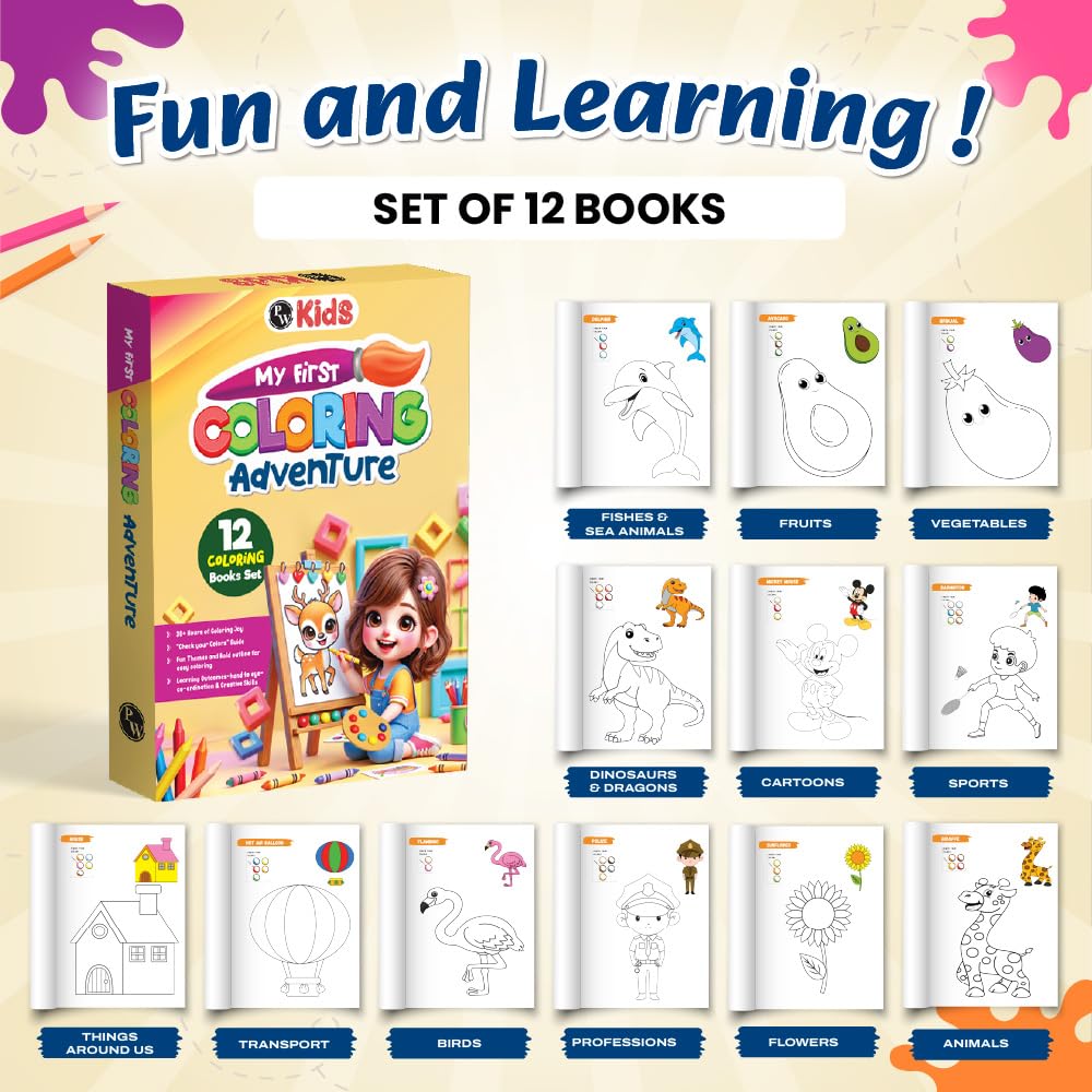Generic Name ‏ : ‎ PW Color Time Coloring Books Set of 12 Books l Fun Activity for Kids