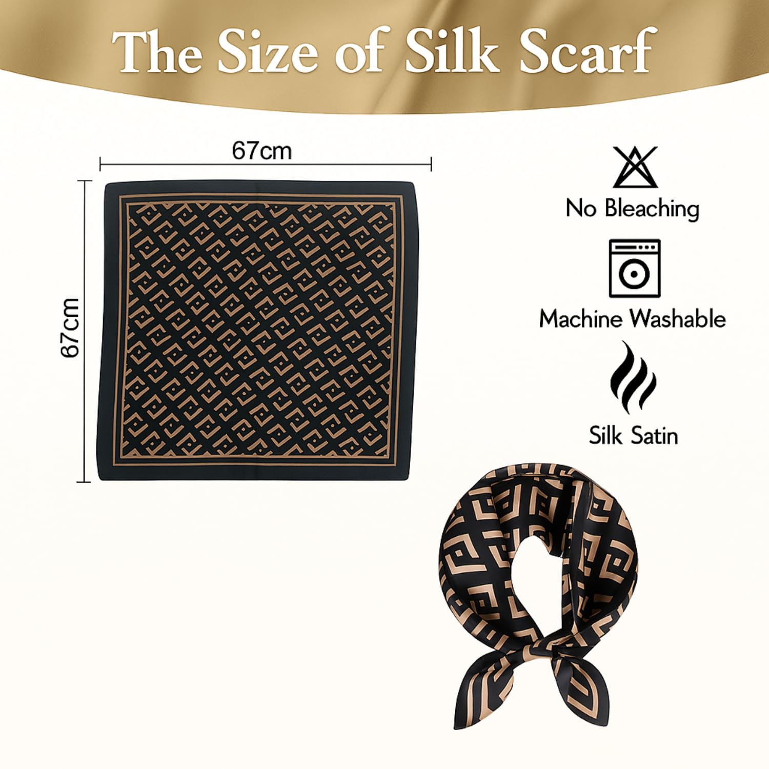 Silk Satin Scarf for Women Stylish – Fashion Bandanas, Head Wrap Shawl Square Neck Hijab, Lightweight Hair Scarves for Office Travel Wear