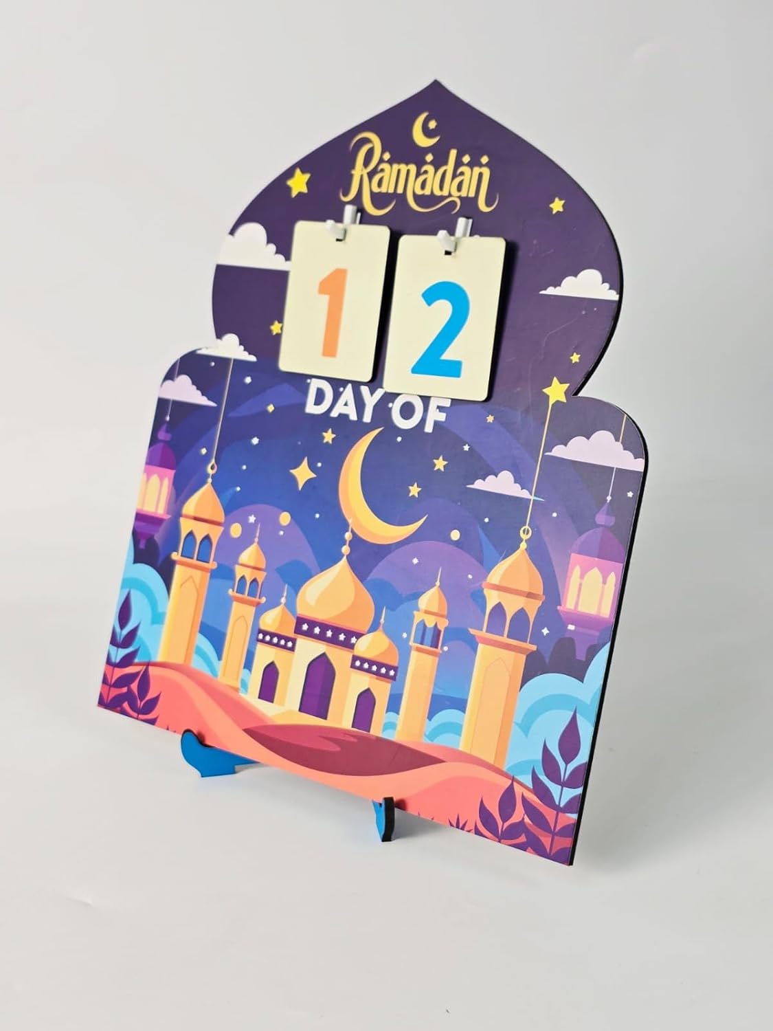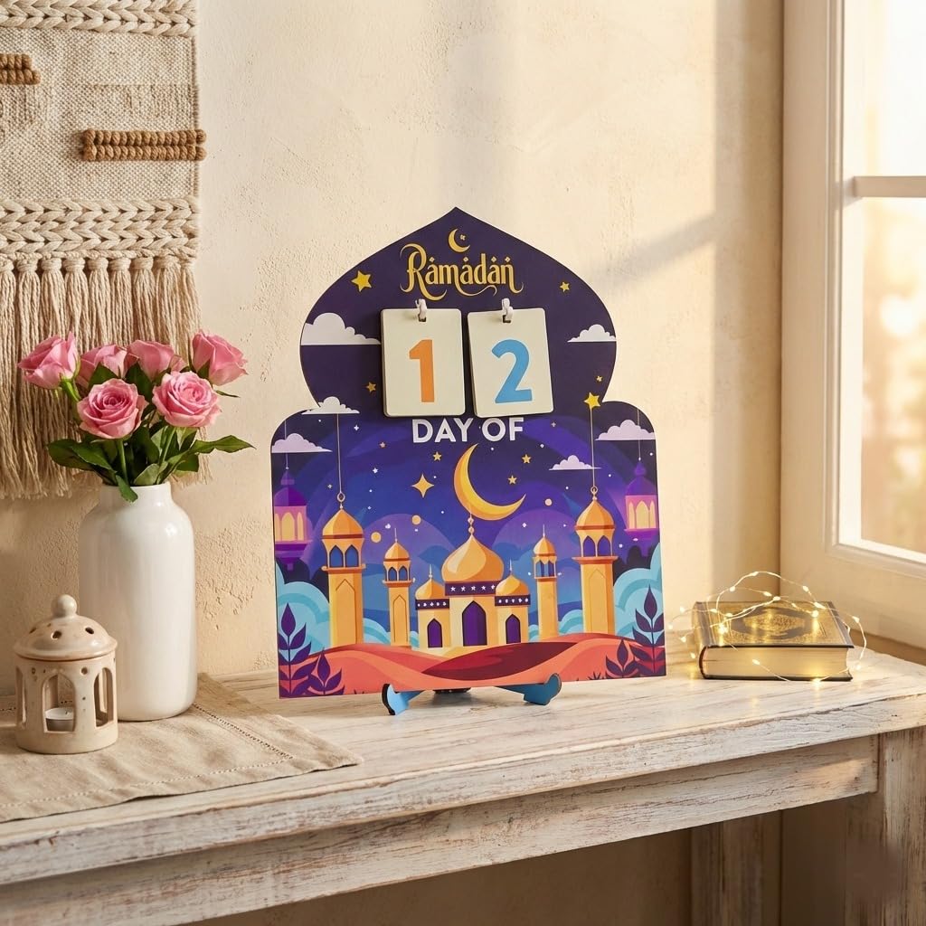 Perfect Ramadan and Eid Decor: Use this beautifully crafted wooden calendar as a centerpiece or table decor for your Ramadan and Eid celebrations. It brings a blend of tradition and elegance to your festive setting.