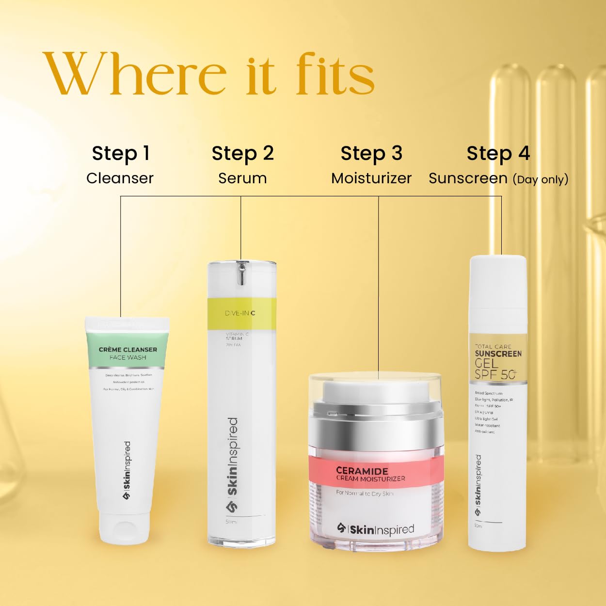 SkinInspired Total Care 2% Glycofilm 0.5% Infraguard Sunscreen Gel Spf 50+ | Broad Spectrum Pa+++ UVA, UVB, IR, Blue Light Protection | No White Caste | best sunscreen for all skin type | 50 ml