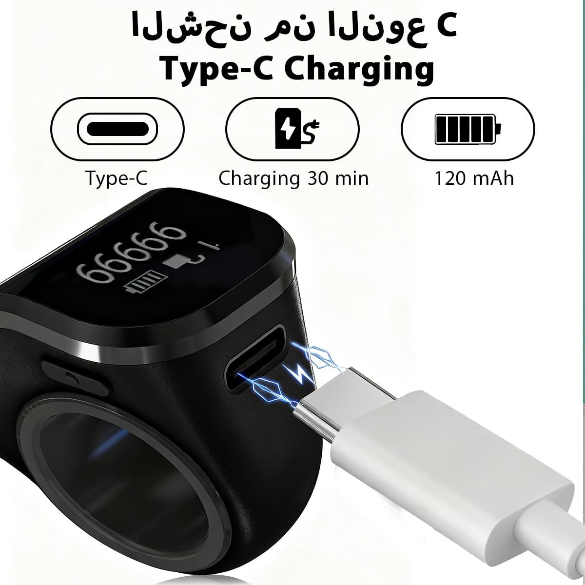 Smart Tasbih Tally Counter Ring for Muslims Zikr Prayer Adjustable Electronic Timing Reminder Ring Resettable OlED Display Wearable Handheld Finger Counter Clicker Type C Cable Sports Count Black