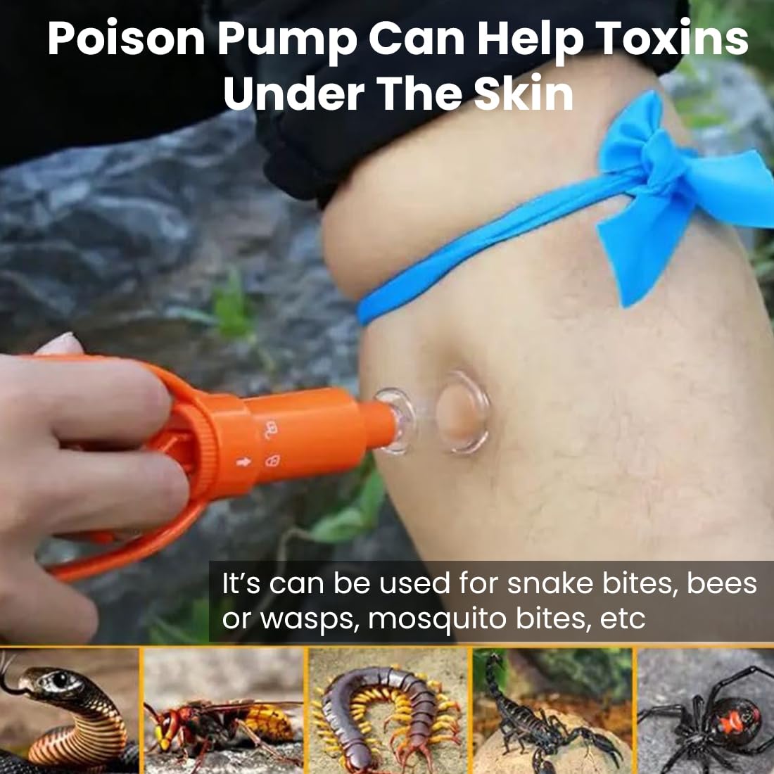 This versatile venom extractor pump kit is designed to support outdoor safety preparedness during activities such as hiking, trekking, camping, and travel in remote locations. The kit includes a manual suction pump and accessory components that allow convenient use when quick action is required in outdoor environments. Its hand-operated design creates controlled suction without relying on batteries or electrical power, making it dependable in locations where power sources may not be available. The compact storage case keeps the components organized and protected, while also making it easy to carry in backpacks, travel kits, or vehicle glove compartments.The device is commonly included in outdoor safety gear and survival kits used by campers, travelers, and adventure enthusiasts. It is often used in situations involving exposure to insects or other outdoor bite incidents while spending time in nature. The multiple suction attachments allow flexibility when positioning the pump on different areas of the skin, helping users operate the device more conveniently.Clear step visuals provided with the kit help guide the setup and application process, allowing quick understanding even in unfamiliar situations. The lightweight and portable construction ensures the kit can travel easily without adding unnecessary weight to outdoor equipment. Built from durable materials designed for repeated use, this suction pump kit supports general outdoor preparedness and is a practical addition to home, travel, and adventure first aid supplies.