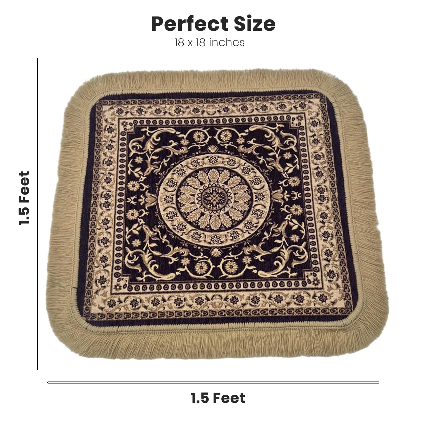 Versatile Multipurpose Rug: Designed for complete flexibility, this square mat is perfect for mandir use, meditation, yoga, and long floor-sitting sessions. It also doubles as a decorative rug, festival accessory, or portable travel prayer mat. Suitable for home, office, garden, or gifting, its elegant design enhances any spiritual or living space effortlessly.