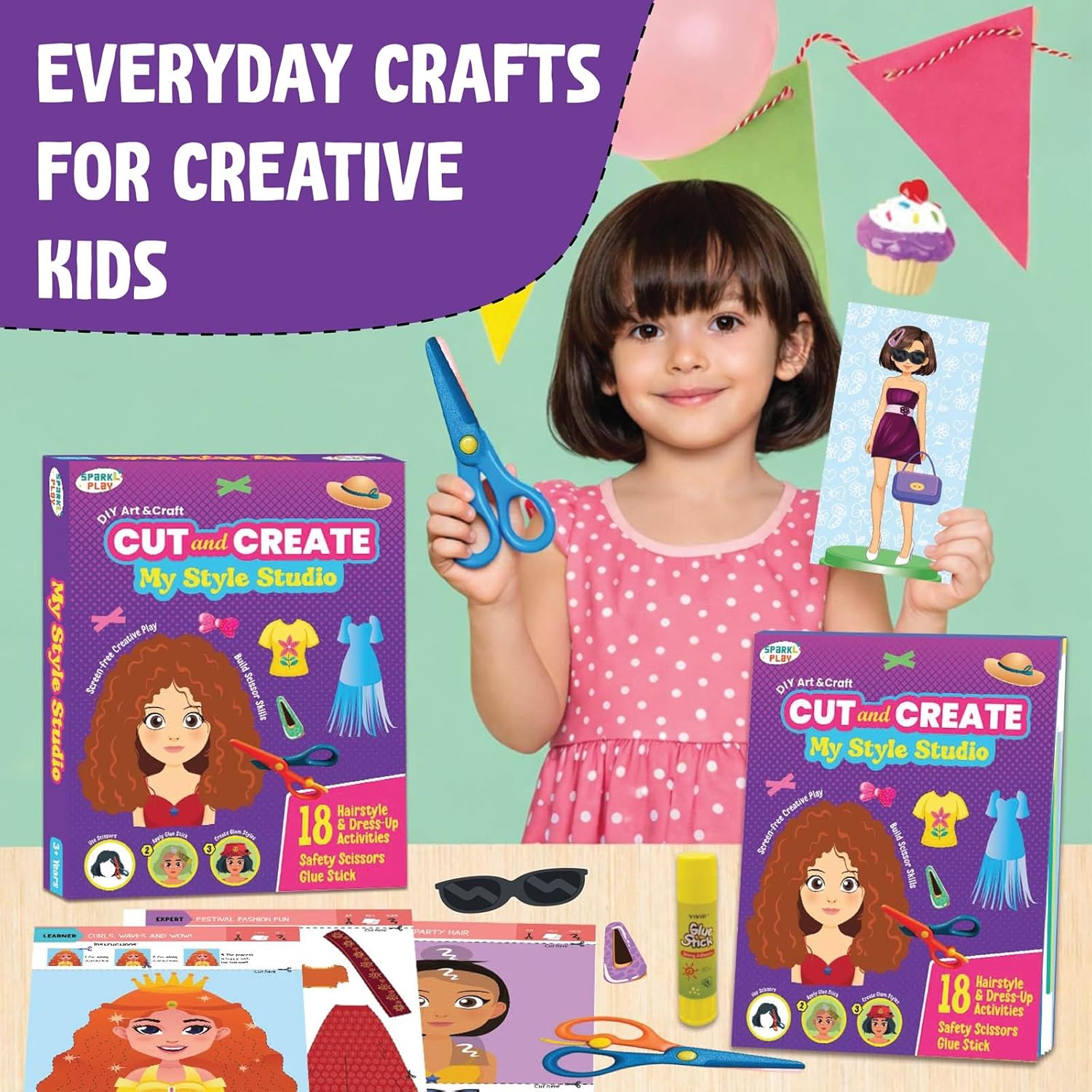 DEVELOP SCISSOR SKILLS (AGES 3+): SparkLPlay My Style Studio helps girls build essential scissor skills through fun, hands-on cutting activities. Perfect for beginners learning to cut safely and confidently.