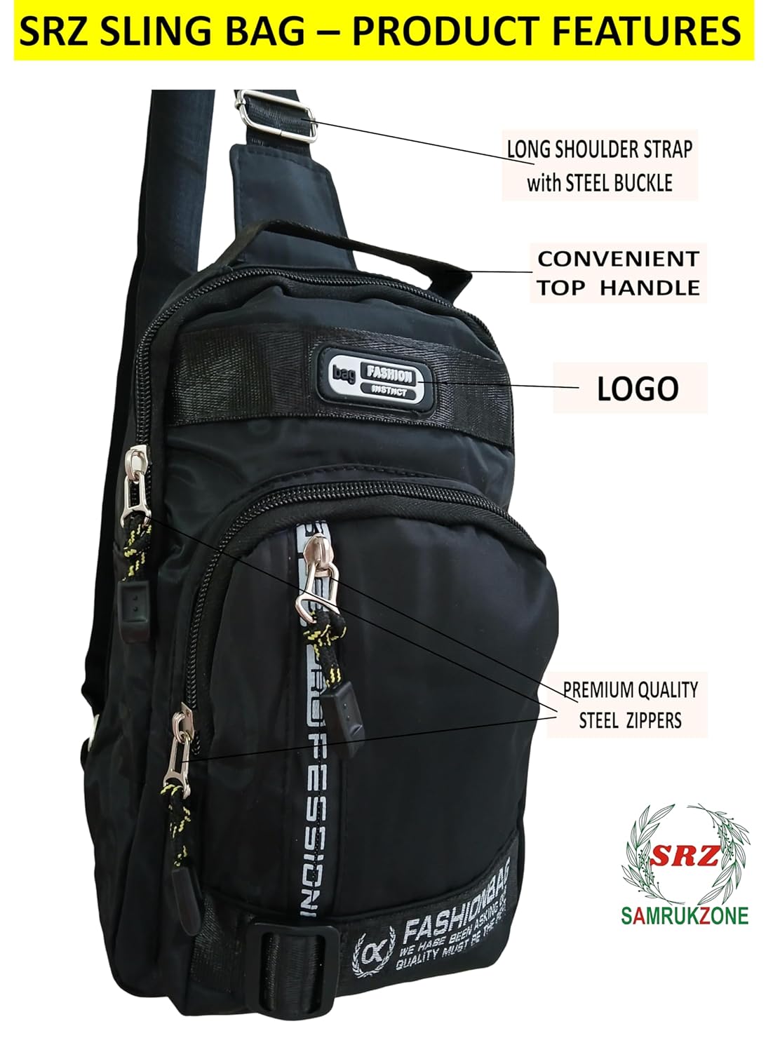 SRZ Crossbody Sling Bag | Water Resistant | Glossy Vibrant Colours | Chest Bag Waist Bag | 4 Pockets | Adjustable Shoulder Strap Elevate your travel experience with the SRZ Waterproof Crossbody Sling Bag. This versatile bag boasts glossy, vibrant colours that catch the eye. Its multipurpose design allows it to serve as a chest bag, sling backpack, shoulder backpack, crossbody bag, casual daypack making it perfect for travel, hiking, gym, office, or cycling. Crafted from high-quality polyester, this fashion bag features 4 pockets (including a secret hidden pocket) with smooth steel zippers and a thick adjustable shoulder strap with steel buckles. Measuring 28x17x10 cm, it offers ample space for your essentials. This bag is a wonderful gift for everyone, combining style and functionality seamlessly.