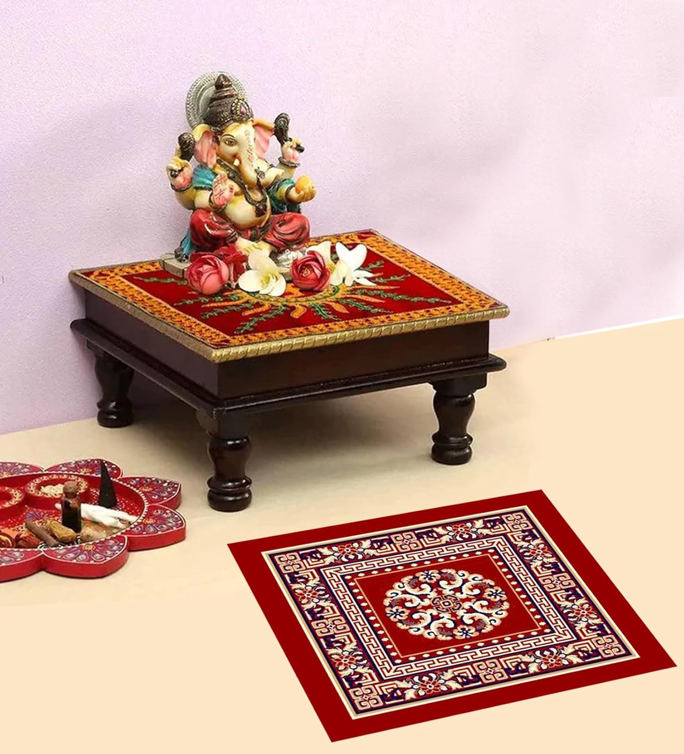 Spiritual Connection: The SacredAura Pooja Mat is more than just a physical surface; it serves as a conduit for your spiritual connection, enhancing your mindfulness and promoting inner peace.