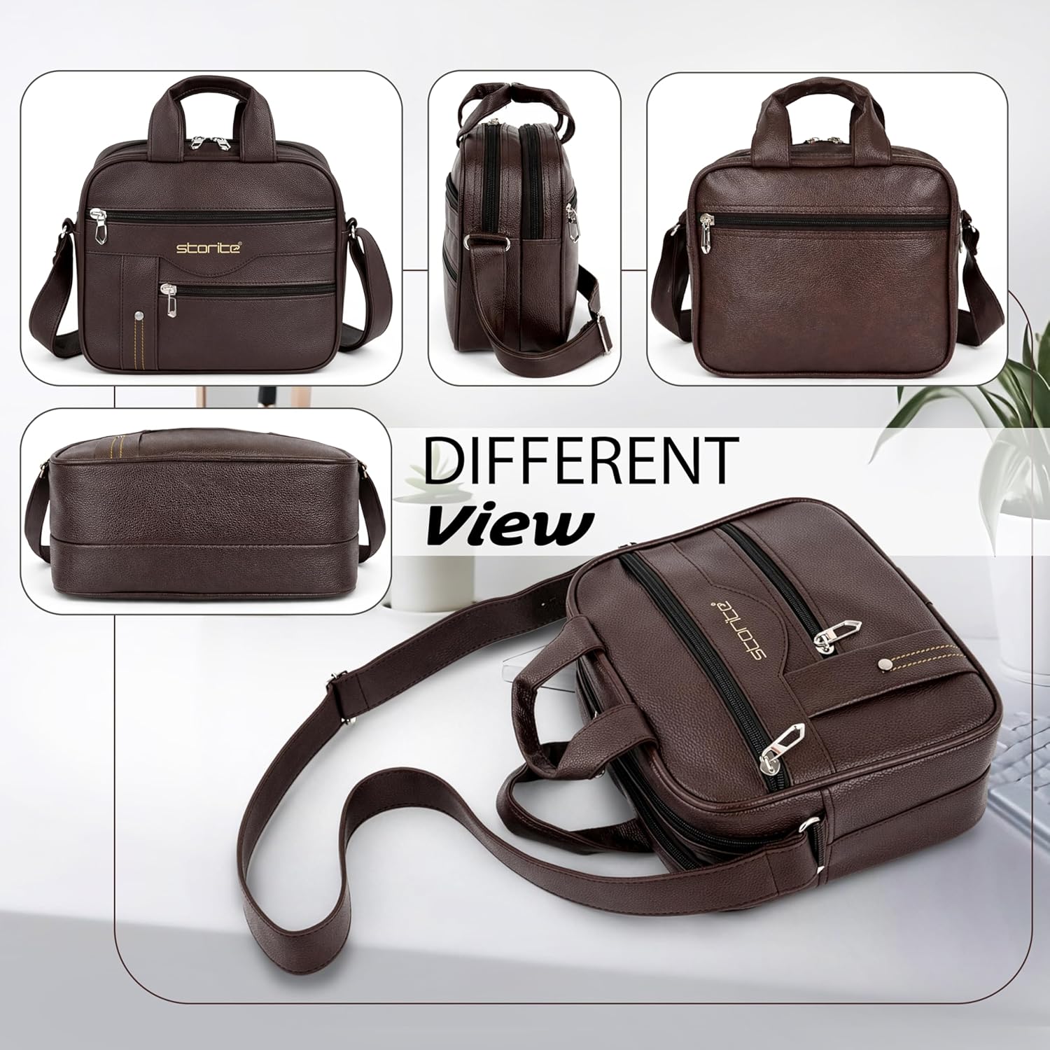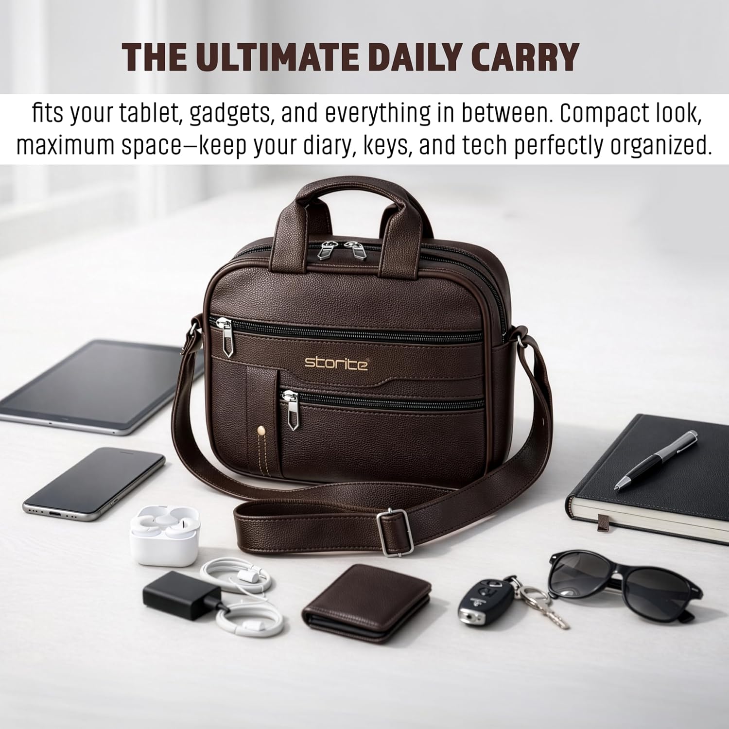 Storite 8 Inch Stylish Small PU Leather Sling Cross Body Travel Office One Side Shoulder Bag for Men Women (25 x 11 x 20 Cm)