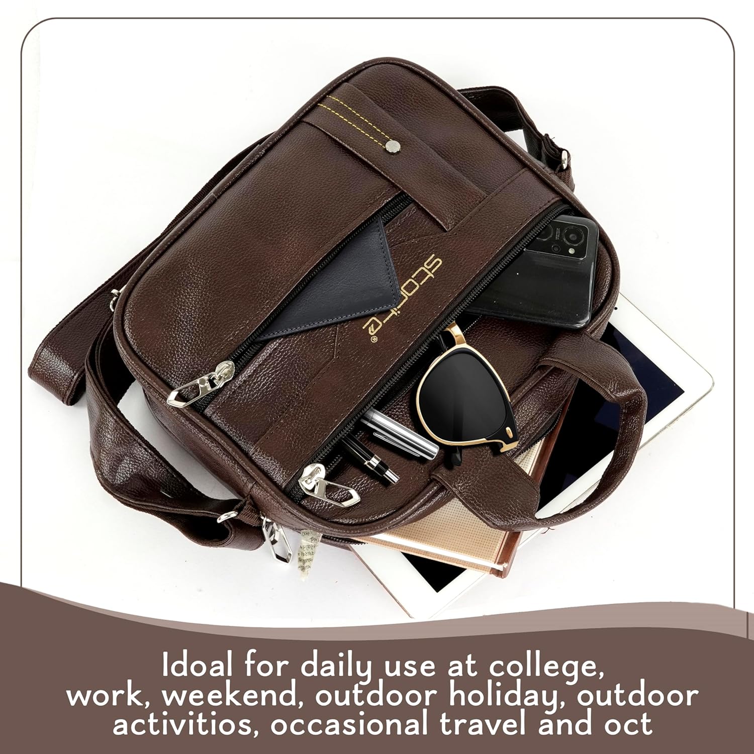 Brand: Storite Color: Coffee Brown Material: PU Leather Product type: Sling & cross body Bag / Travel Bag Product description: Perfect messenger bag/shoulder bag/cross body bag/handbag/ hiking or travelling Bag, suitable for office, outdoor and other occasions. Freely adjustable shoulder strap, you can adjust it according to your height and comfort requirements. The stitching on this product is nice and very strong.