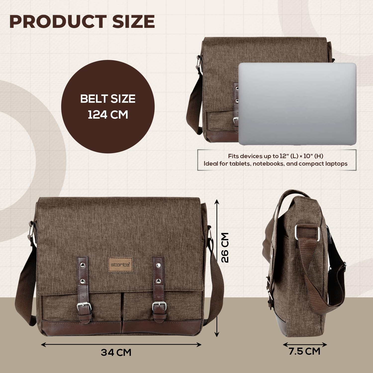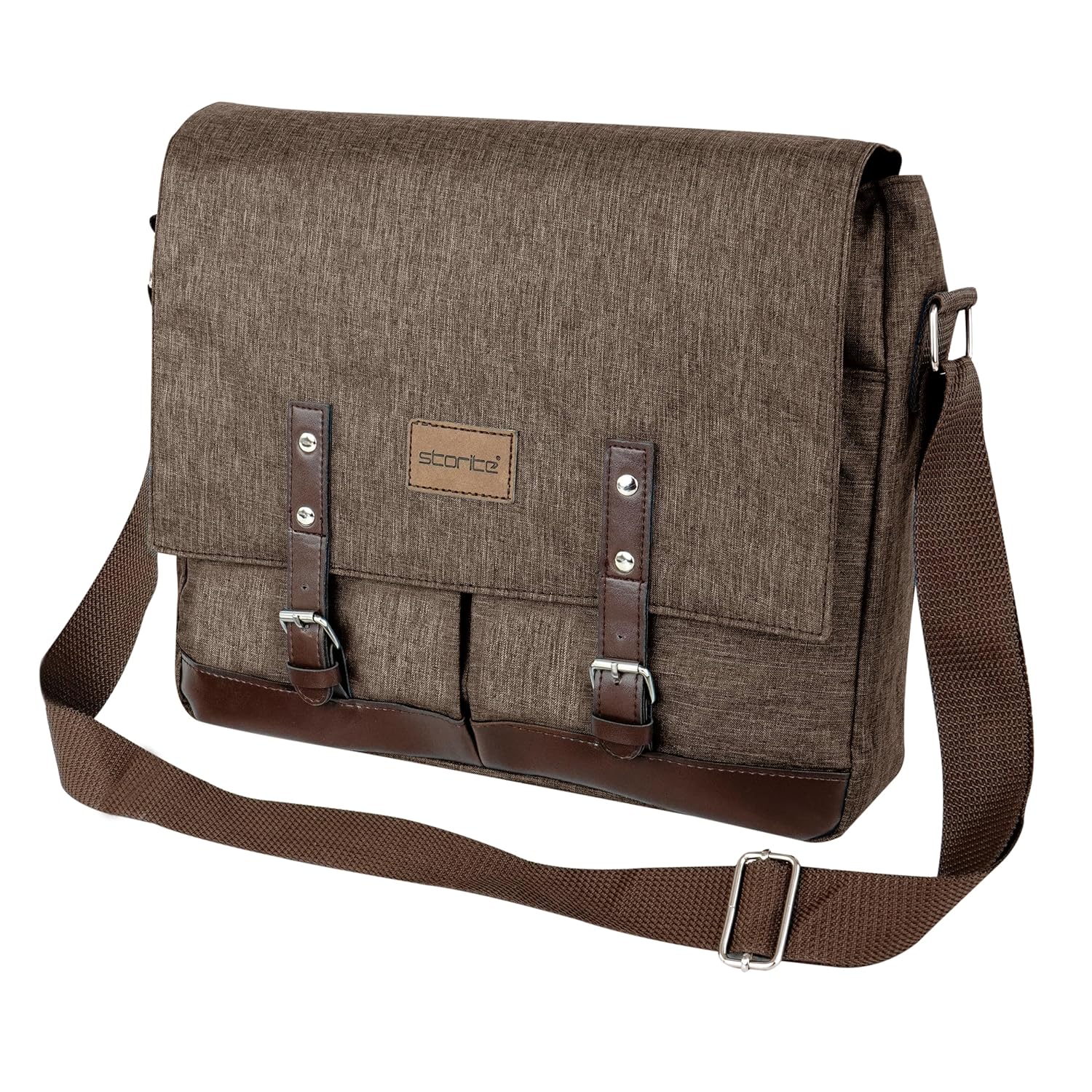 Storite Laptop Messenger Bag for Men & Women – Water-Resistant Office Shoulder Bag with Multiple Pockets, Adjustable Strap & Leatherette Detailing (26 x 7.5 x 34 cm)
