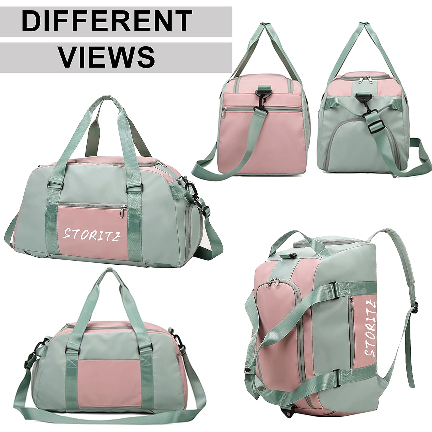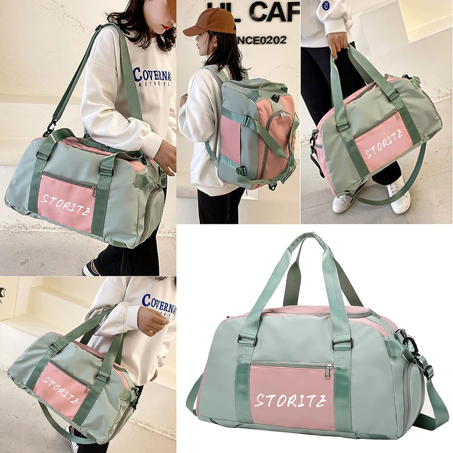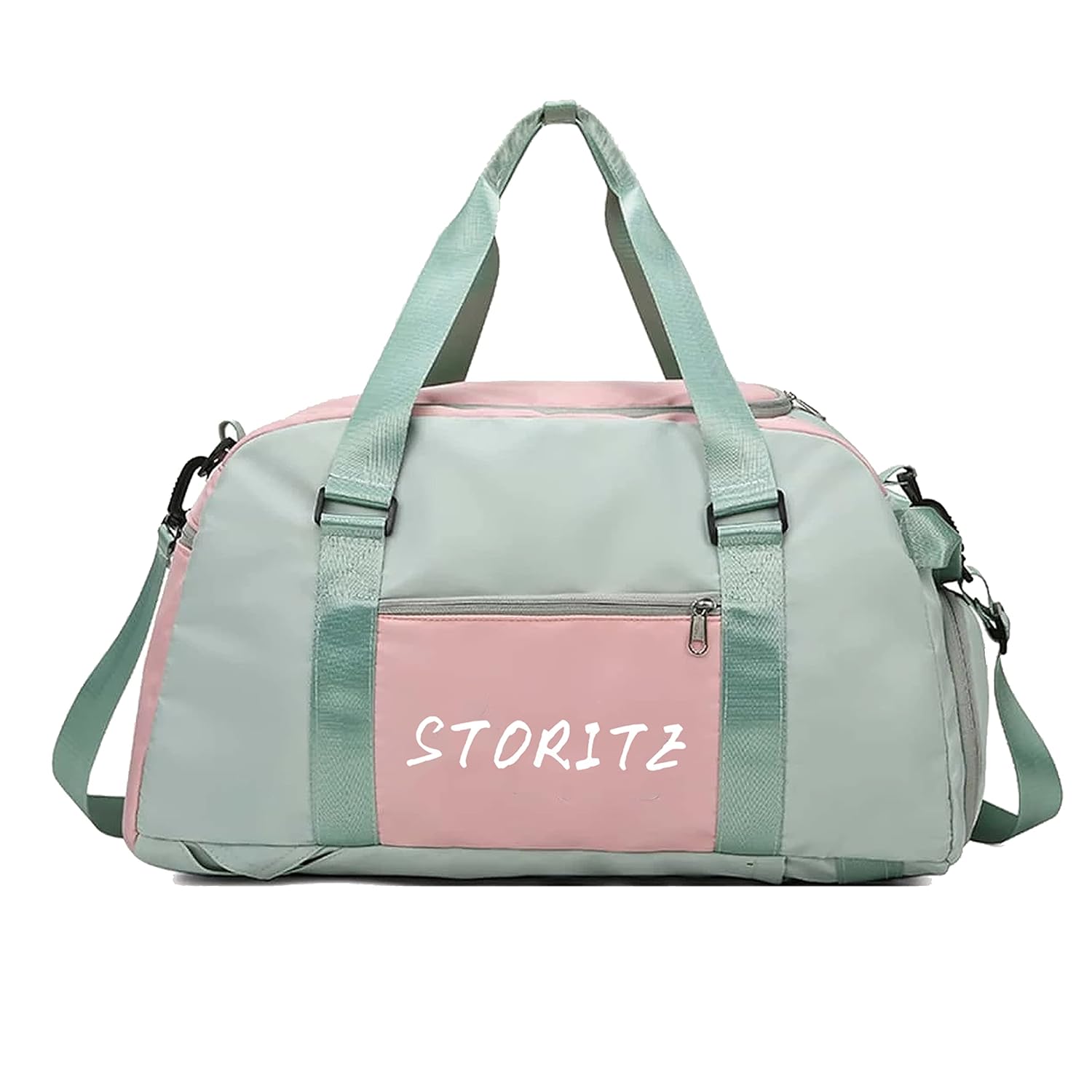 Storite Nylon 46Cm Travel Duffle Bag for Women with Dry and Wet Separate Pocket, Lightweight Backpack with Shoe Compartment Carry Luggage Bag for Men & Women (GreenPink, 46x23x25 cm)