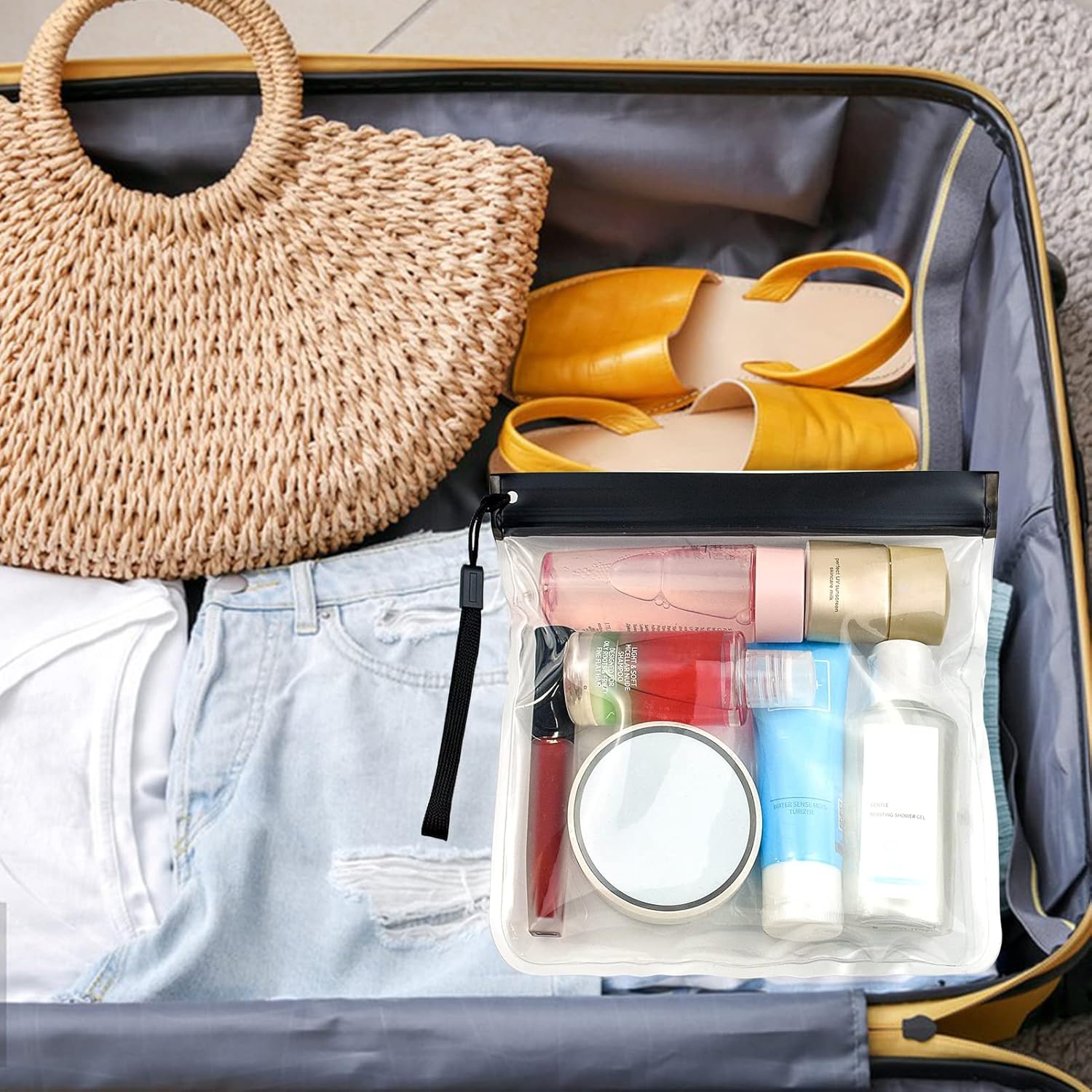 【Premium Material】: The clear travel toiletry bag is made of thickened PVC material, with great sealing features, which protects your personal stuff from water and dirt during your travel.