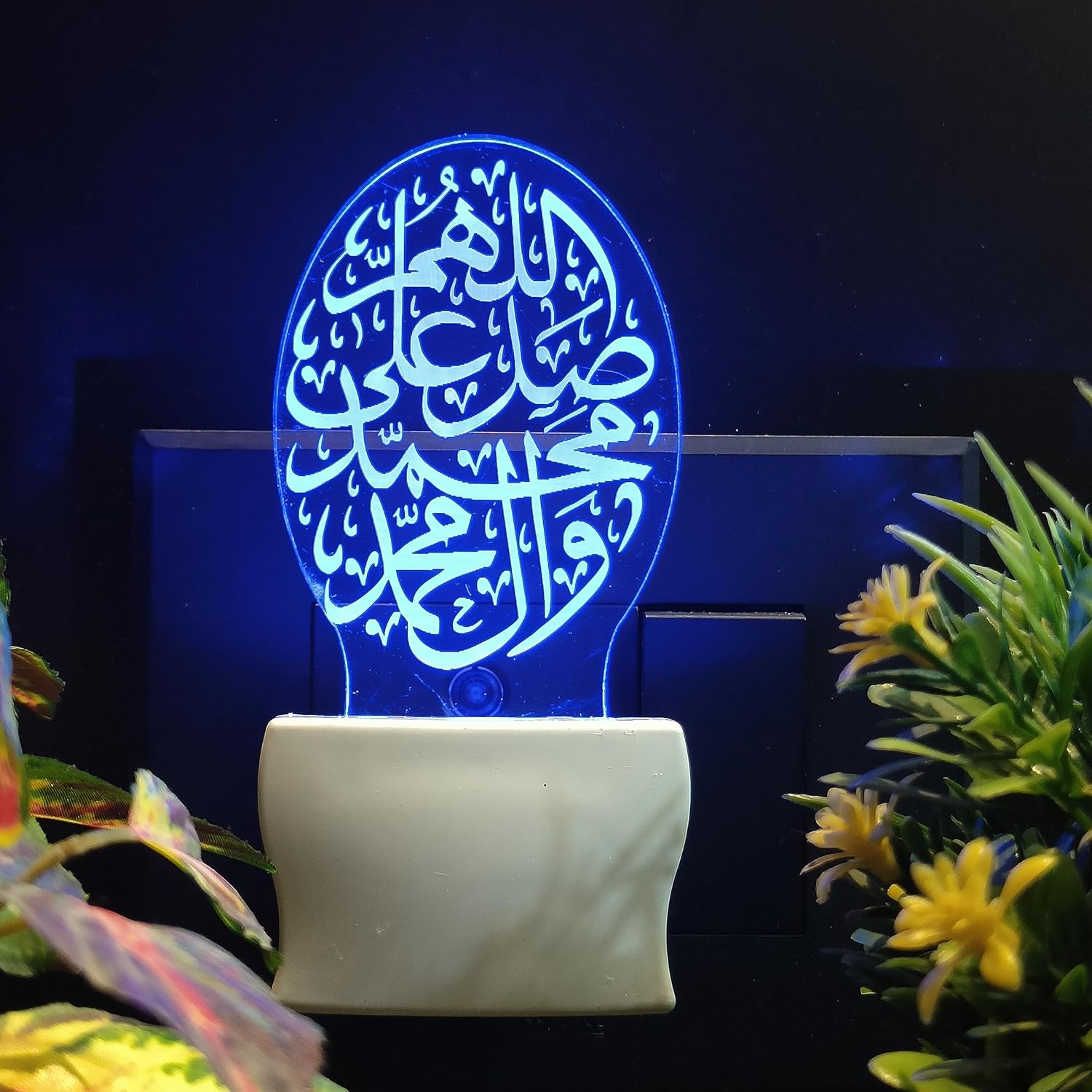 VISUALS and DESIGN: There is a 3D optical illusion occurring when you turn on this clear transparent design engraved night lamp. Laser engraved design will glow in RGB multicolor light. It gives pattern visuals in a dark atmosphere. This night lamp has a design of “ISLAMIC” which makes it more glorious. When you turn on the night lamp you will see the “ISLAMIC” design glows. Design Name : nSD0184-ISLAMIC