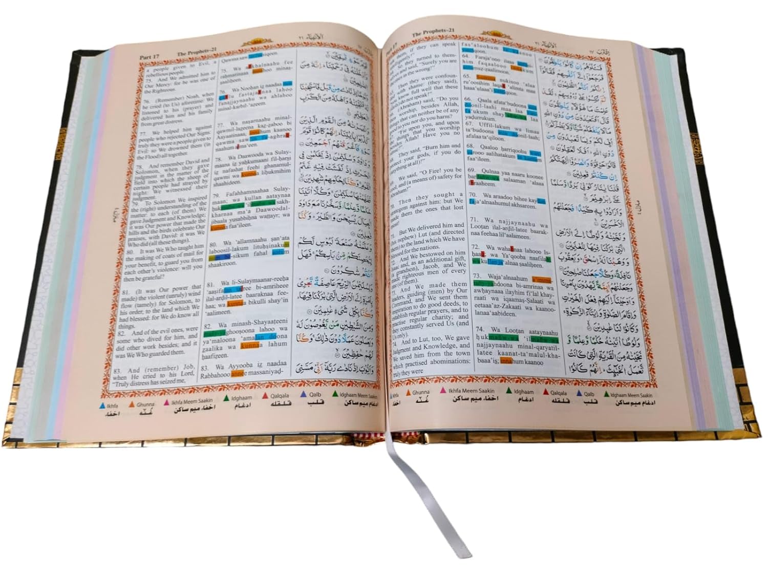 The Holy Quran Color Coded Rainbow With Tajweed Rules By Abdullah Yusuf Ali in Roman Arabic And Translated in English Indian Good Printed Quality