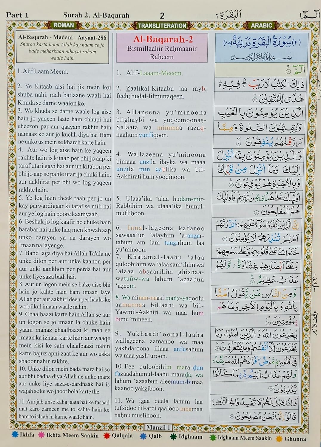 The Holy Quran Coloured Edition Urdu Translation in Roman Script with Transliteration And Arabic Text By Hazrat Maulana Ashraf Ali Thanvi … … free rehel and juzdan cover 6 ml attar bottel