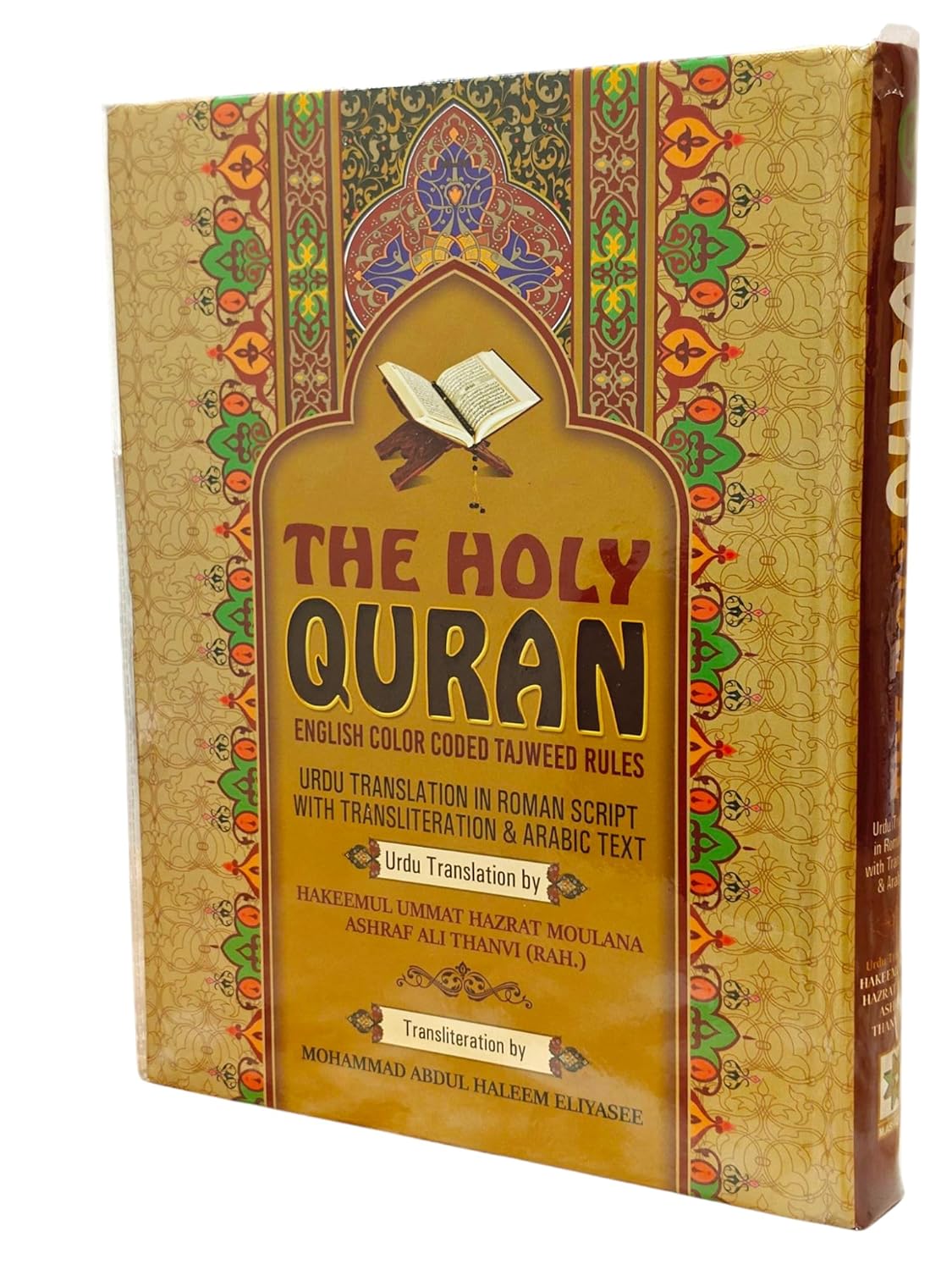 Generic Name ‏ : ‎ The Holy Quran Coloured Edition Urdu Translation in Roman Script with Transliteration And Arabic Text By Hazrat Maulana Ashraf Ali Thanvi … Hardcover with free rehel and juzdan cover 6 ml attar bottel