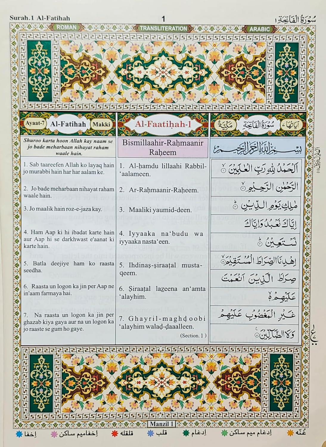 Generic Name : The Holy Quran Coloured Edition Urdu Translation in Roman Script with Transliteration And Arabic Text By Hazrat Maulana Ashraf Ali Thanvi Transliteration Mohammed Abdul Haleem Iliyasi Hardcover