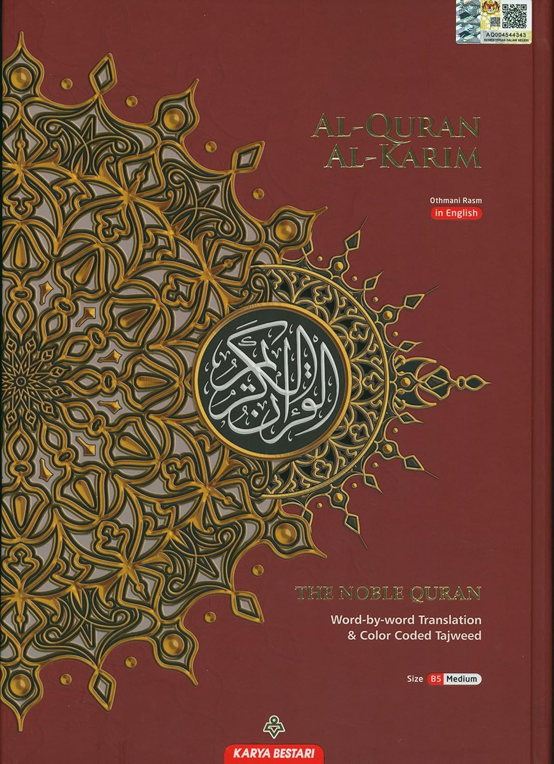 Noble English Black Al-Quran Al-Karim is a translation learning method of word-by-word Al-Quran with every word and sentence is coloured differently, in Arabic and English. Every word in the Noble English Black Al- Quran Al-Karim was translated literally so that the reader could understand the meaning of every single word. It needs to be remembered that not all literal translation represents the exact meaning of the word since the Quran uses varied Arabic language style and sometimes metaphor. Accordingly, to understand the full or intended meaning of the word or the verse, Sahih International the Holy Quran Translation had been included in this edition. However, to comprehend more of the meaning of the Quran, reading the commentary of the Quran from trusted scholars would be necessary.