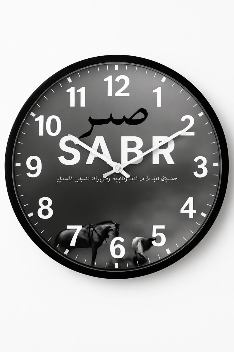 TIKAM Enterprises,SABR Islamic Wall Clock – Black Background Silent Quartz Home Décor