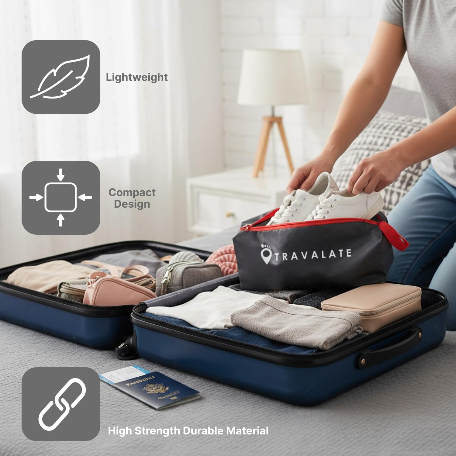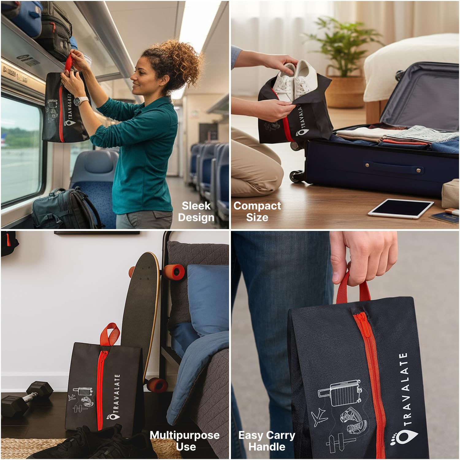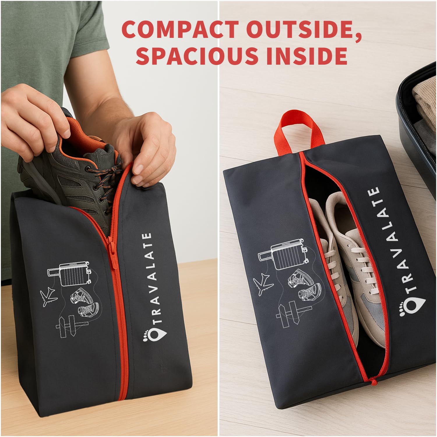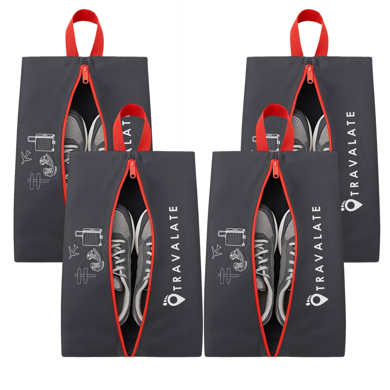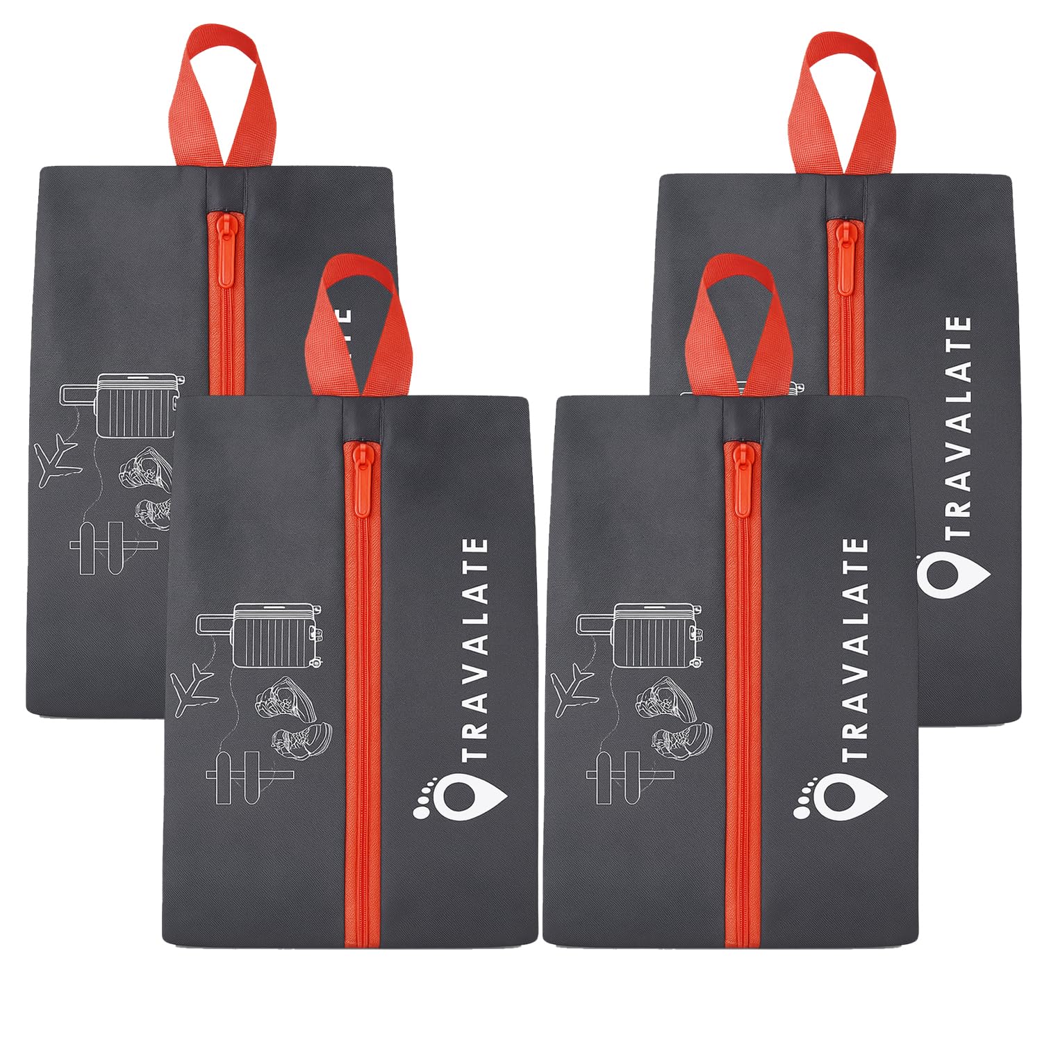 TRAVALATE Set of 4 Shoes Bag for Travel – Non-Woven Shoe Organizer for Men & Women | Lightweight, Water-Resistant, Compact Shoe Storage Pouch with Handle | Fits Up to Size 10 Shoes