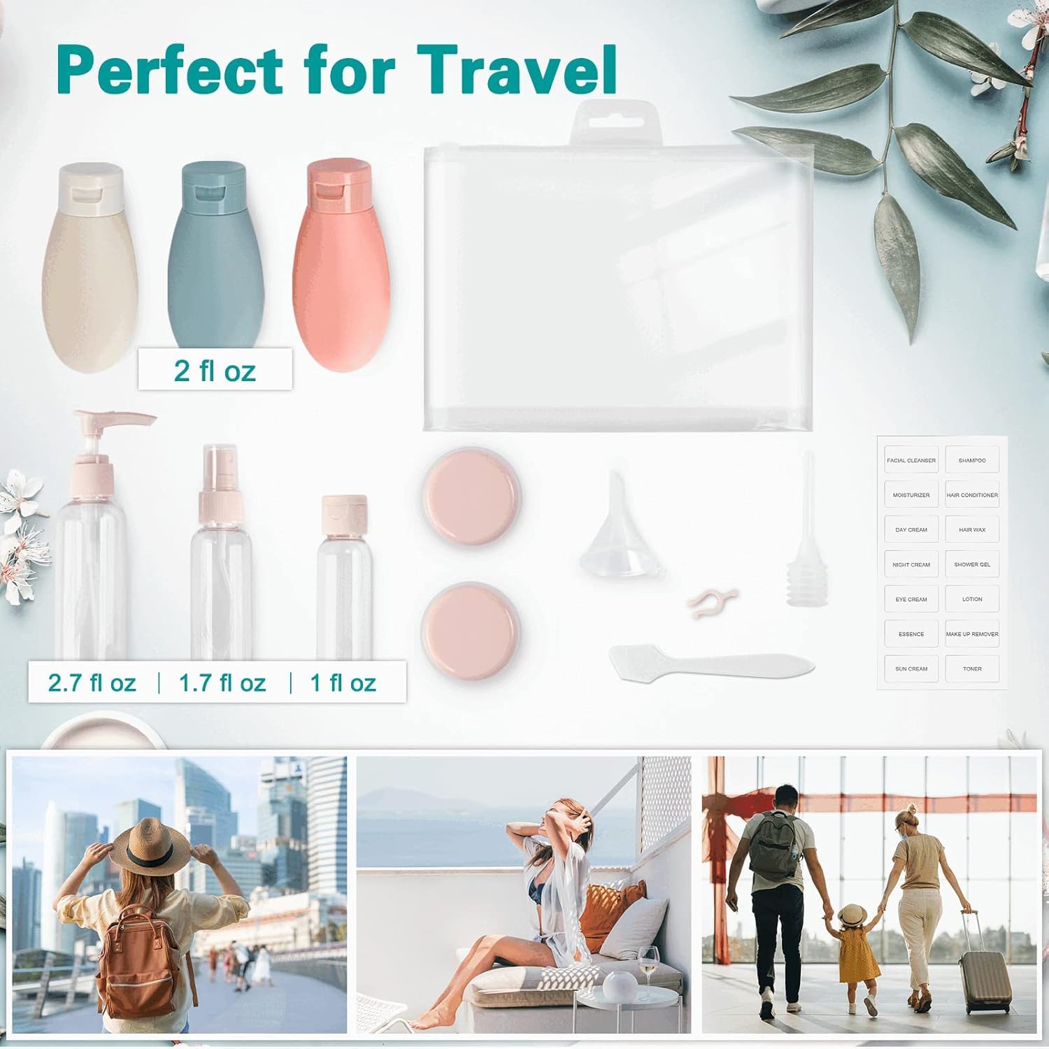 【Reusable TSA Travel Size Kit】 All bottles are refillable and comply with TSA regulations. They serve as excellent containers for your favorite skincare and body products while remaining travel-friendly. Squeeze bottles, jars, pump bottles, spray bottles, flip cap bottles, pipettes, funnels, and makeup spatulas are neatly stored in a one-quart transparent slider bag to save space during travel