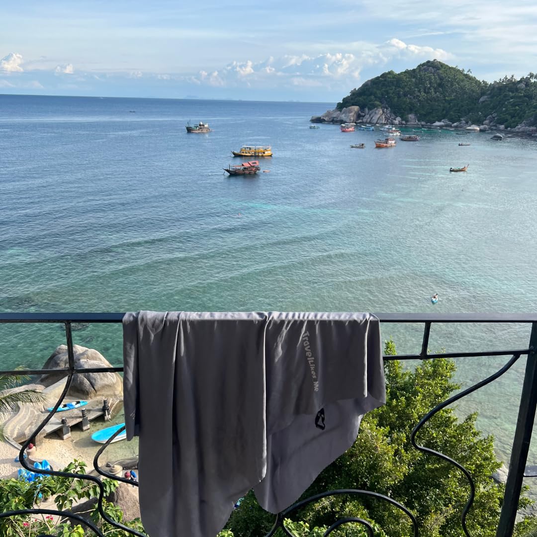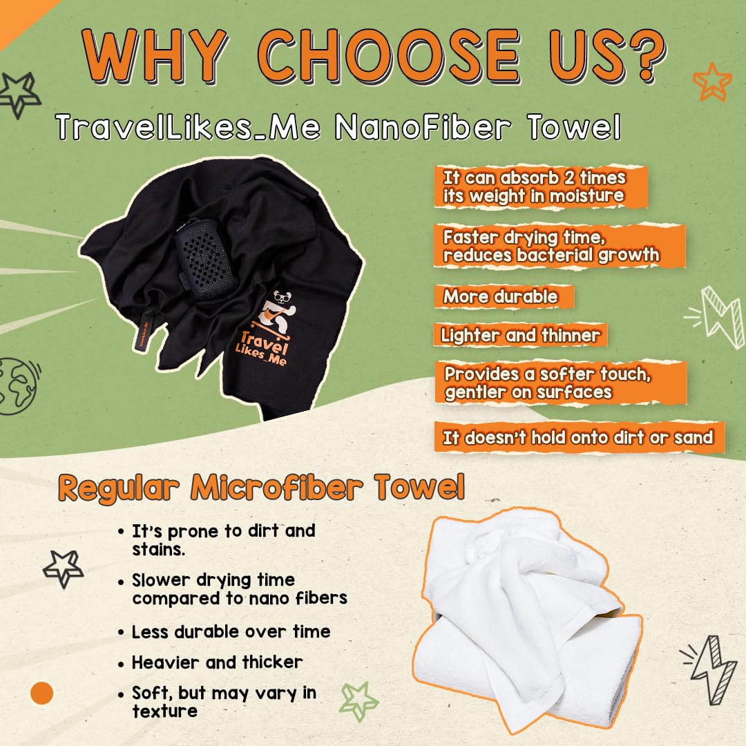 TRAVEL LIKES ME Bath Towel – Quick Dry for Men & Women, Premium Light Weight, Super Absorbent, Soft Thin Smooth Bathing Cloth for Travel, Swiming and Beach, Naonofiber (Black, 76 * 152 cm)