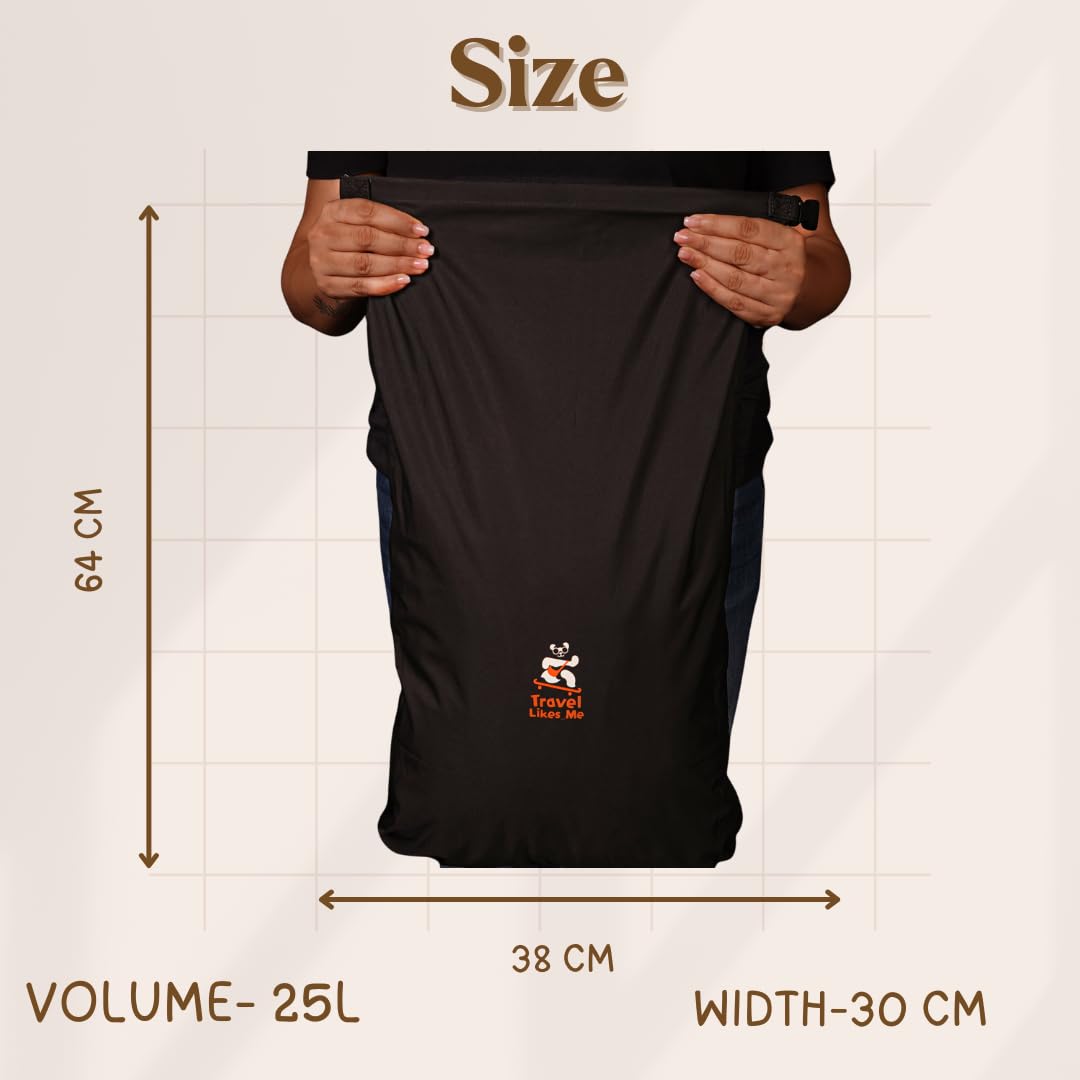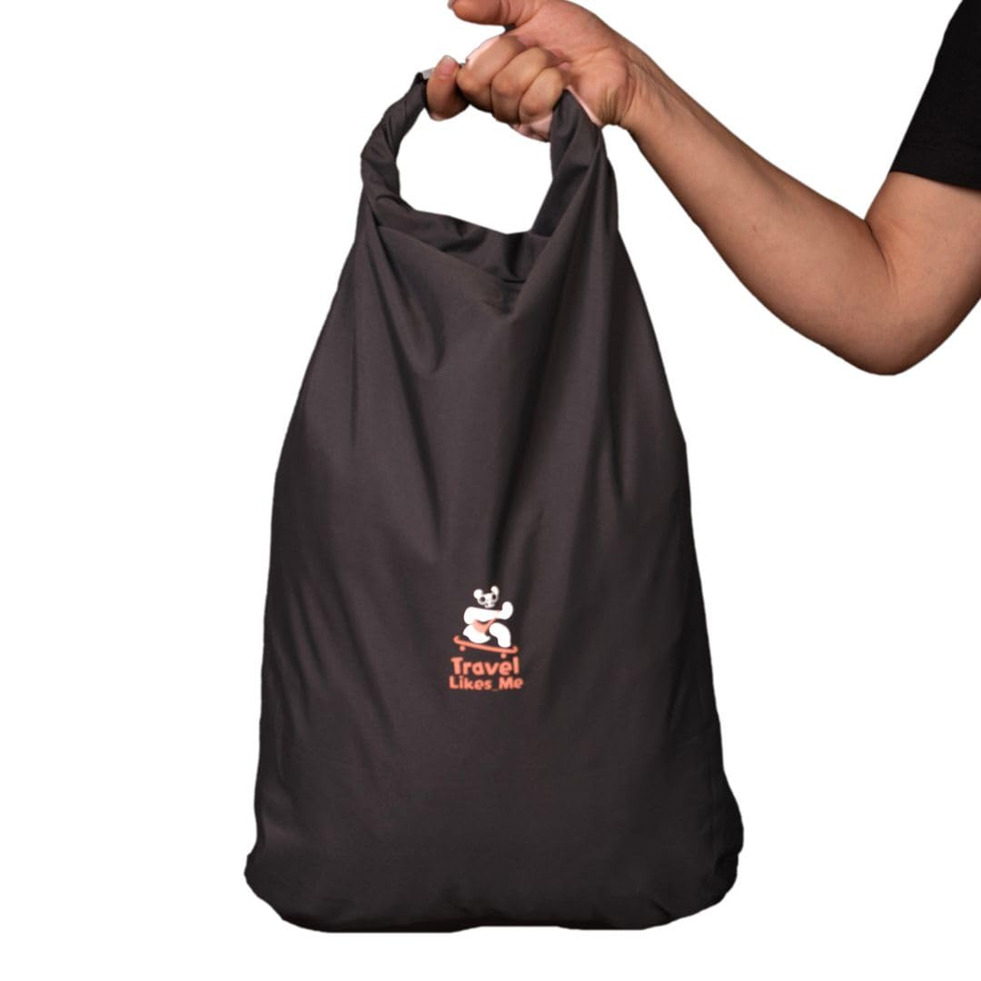 TRAVEL LIKES ME Waterproof Travel Bag – Small Pouch for Men and Women, Travelling Gear, Camping Accessories, Trekking, Hiking, Swimming, Traveller Pouches, 20l ltrs Dry Bag (Black, 20 Liters)