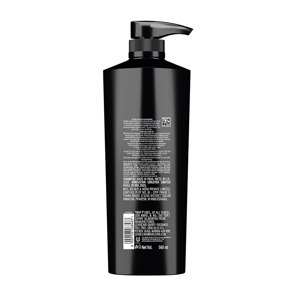 TRESemme Hydra Matrix Hydrating Shampoo 580ml with Polyglutamic Acid for 100H of Fluid Hair | Paraben Free Shampoo for Dry Hair & Scalp | Hard Water Detox