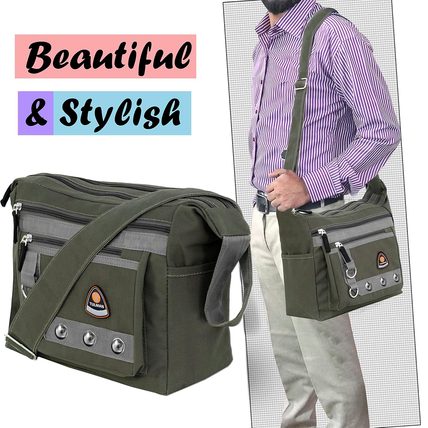 Be the first to review “TULMAN Canvas Sling Cross Body Travel Office Business & College Messenger One Side Shoulder Bag Multi Pocket Sling Bag for Men & Women – 30 x 13 x 26 CM”