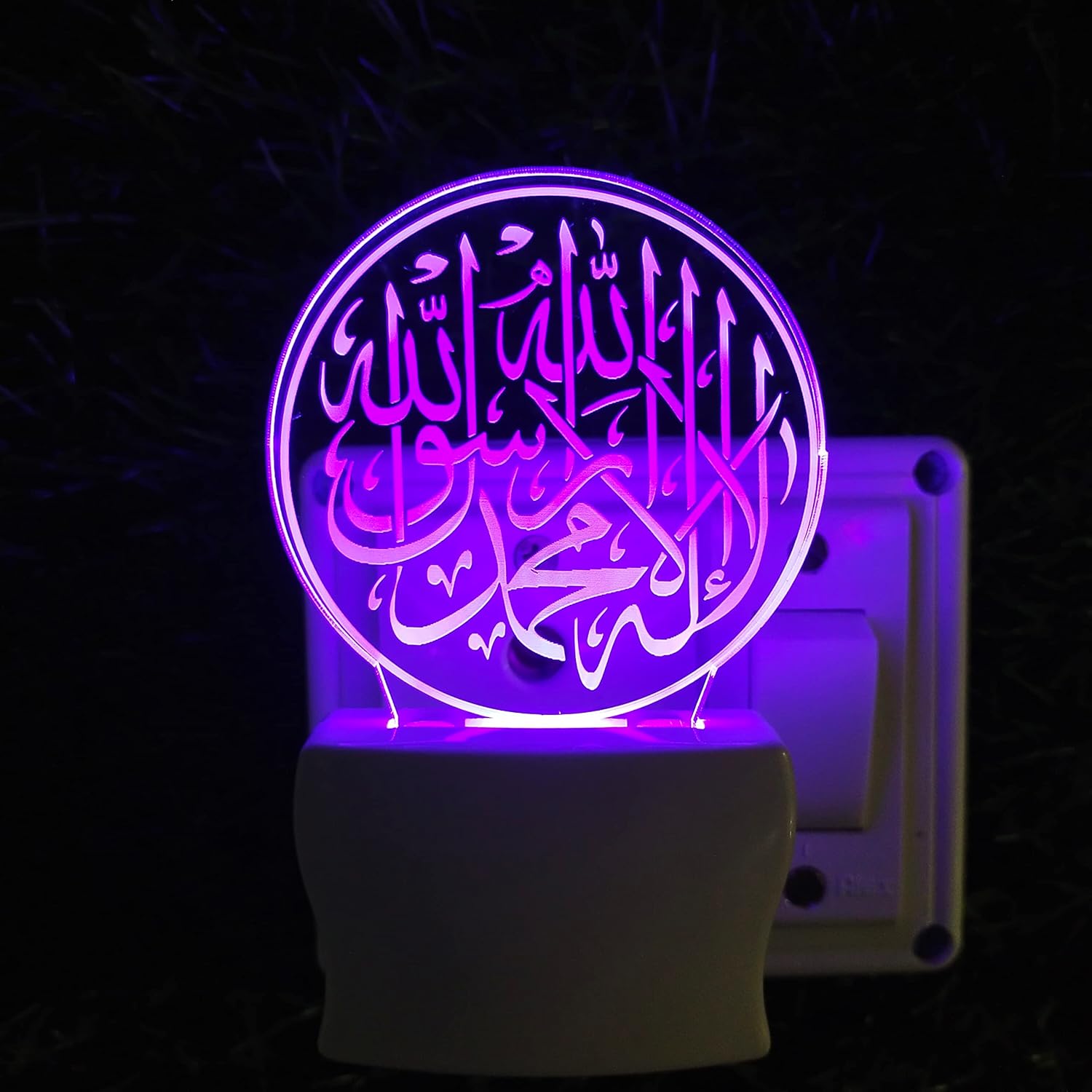 UKANI Islamic 3D Optical Illusion Acrylic Night Lamp, 7 Colors RGB Auto Colour Changing LED Plug and Play Night Light, Office Light, Best for Gift – Pack of 1 (SD044,Multicolour, 3 Inch)