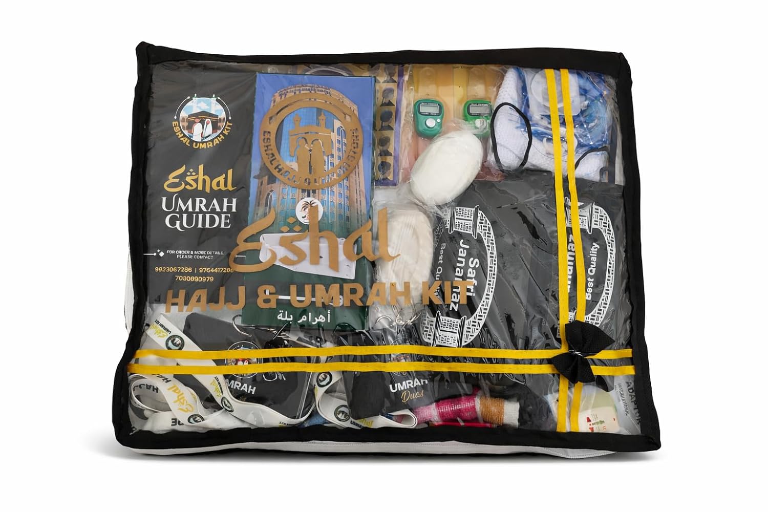 Prepare for your sacred journey together with the Eshal Umrah Couple Kit – specially curated to provide convenience, comfort, and organization for both husband and wife. This Premium Pilgrim Travel Set includes 29+ essential Umrah must-have items, thoughtfully selected to support your spiritual and personal needs during the journey. Designed for travel to Mecca (Makkah) and Medina (Madina), this couple kit ensures you are fully prepared with all necessary essentials in one organized package. Compact, lightweight, and easy to carry, it helps reduce last-minute stress and allows you to focus on your prayers and rituals. Ideal for first-time pilgrims and experienced travelers alike, this Umrah Couple Kit also makes a thoughtful and practical gift for loved ones embarking on their spiritual journey.