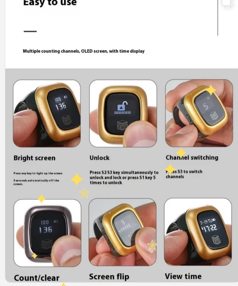 Zikr Smart Ring is a revolutionary digital tasbeeh designed to complement your Islamic prayers and lifestyle. Compact and versatile and this smart ring is not just a tasbeeh counter but also a stylish and practical beautiful accessory. With features like Bluetooth connectivity and waterproof and a long-lasting rechargeable battery aprox 3 days, the Zikr Smart Ring is your ultimate companion for daily prayer and mindfulness.