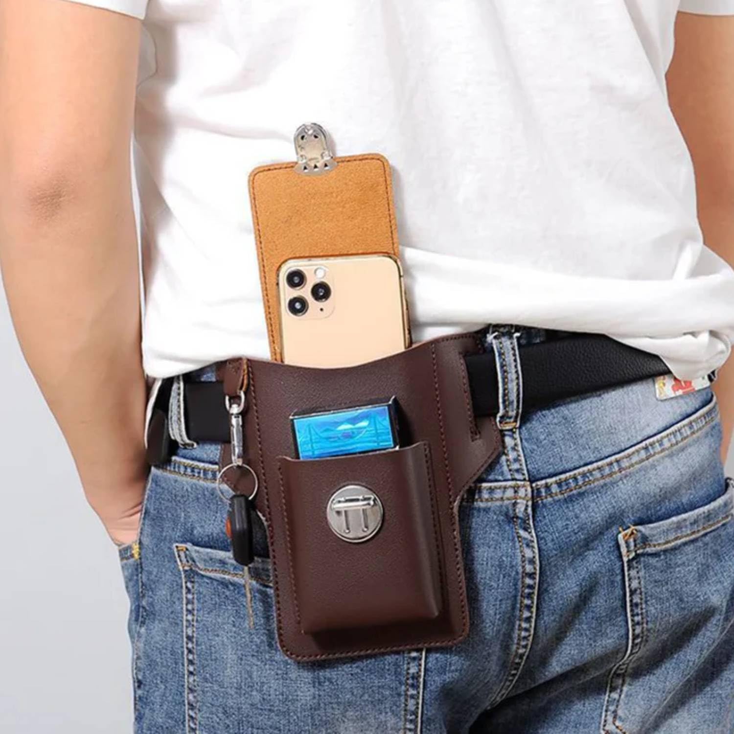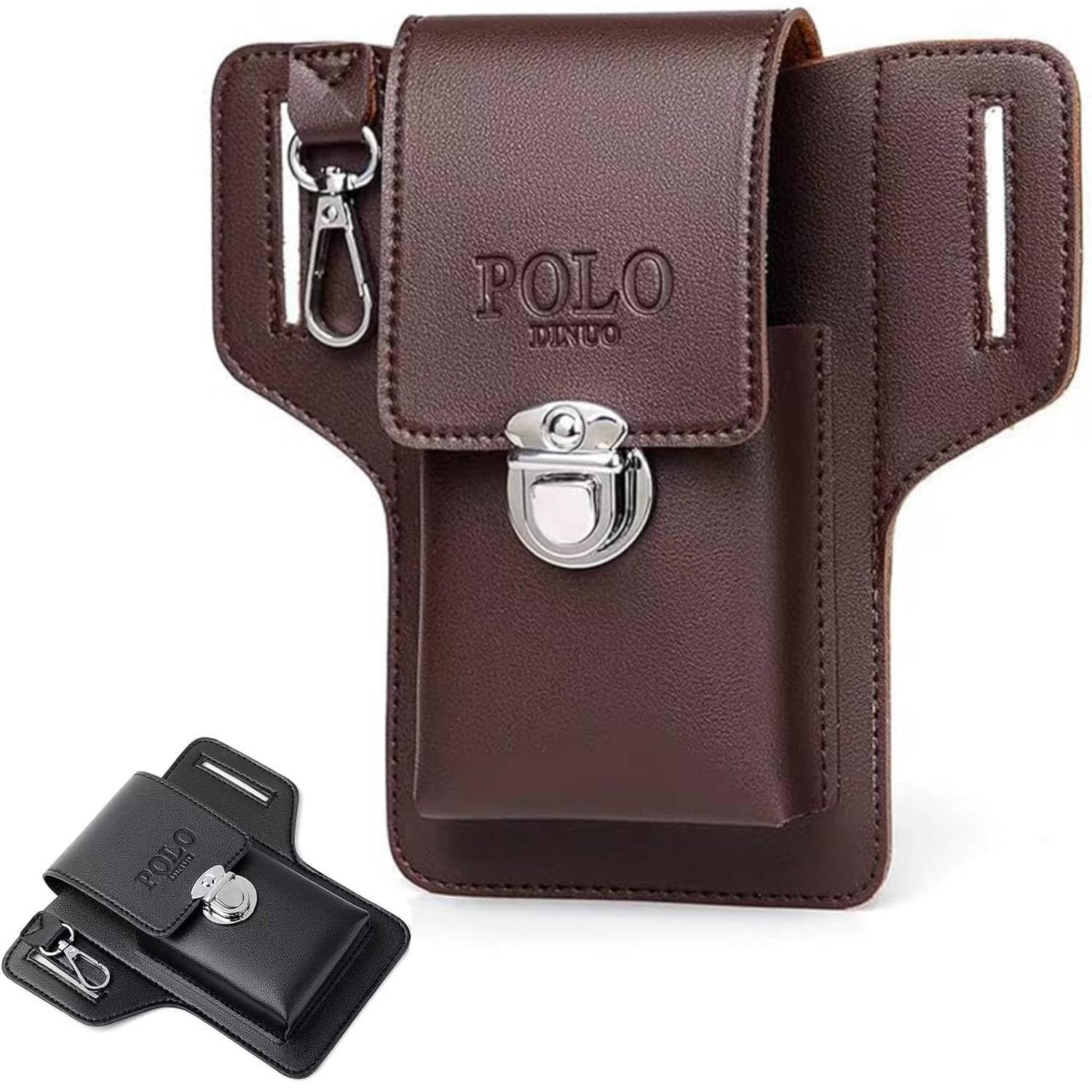 Wide Compatibility: This leather pouch is widely compatible with iPhone Samsung phone and Google pixel series, etc. You can also put in cash in the dissection.Durable PU Leather: Crafted by high quality PU material leather, which doesn’t hurt animals but have excellent quality. Good durability, waterproof to prevent Loss and wetting!Sophisticated Design: Simply place it on your belt to securely hold your cell phone, cards, cigarette case, etc. And keep them safe with the metal clips. On the side of the pouch, there is a vintage keychain to hold your keys.Preferred For Carrying: The clever design gives the pouch softly curved edge and high capacity. Lightweight but securely protects your belongings.Occasions: Suitable for camping, walking, outdoor work, etc. It can also be used as waist bag, outdoor hiking bag for your travel.