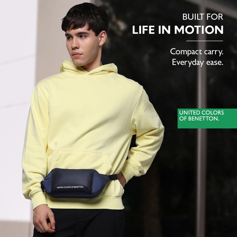 United Colors of Benetton Unisex Waist Pouch Noir – Navy | Sling with Hidden Zipper Pocket | Waist Bag with Adjustable Strap for for Travel and Daily Essentials | Stylish Crossbody Travel Fanny Pack