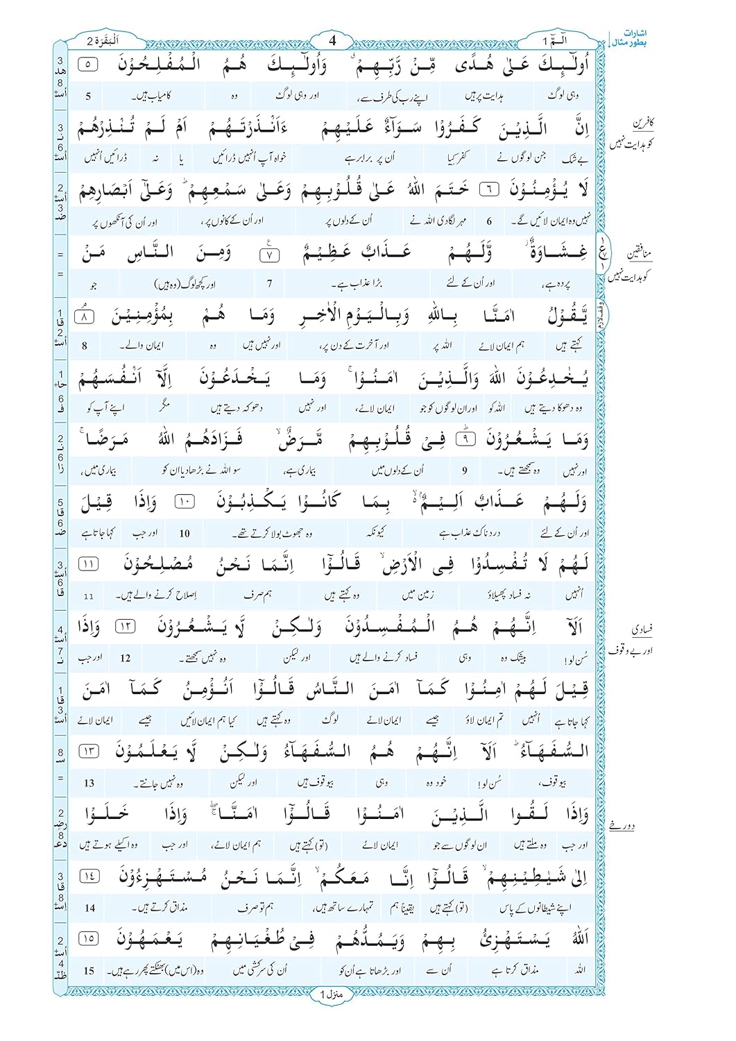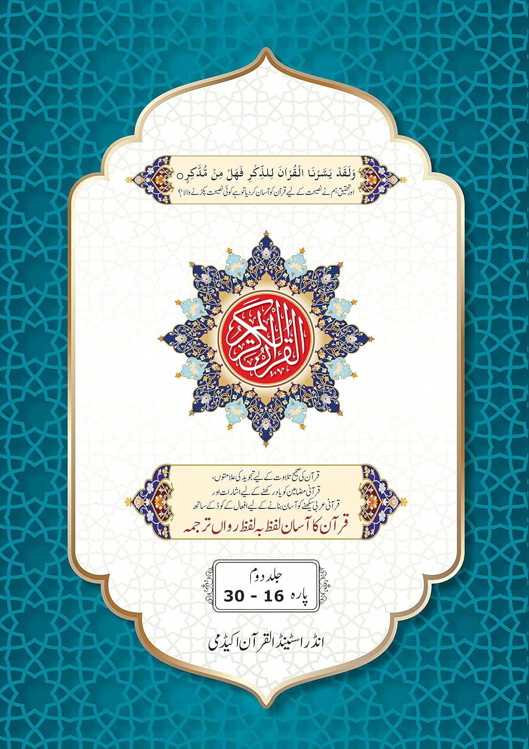 Unique features to help you understand the Qur’an * 15 lines per page (just like Hafizi / Madani Mushaf) * Easy Word-For-Word translation to facilitate the learning of Qur’anic Arabic * Running translation to understand the meaning of the Qur’an * Special Tajweed-coded font * Beautiful Bookmark with Tajweed rules & supplication for Sajdah of Tilawah