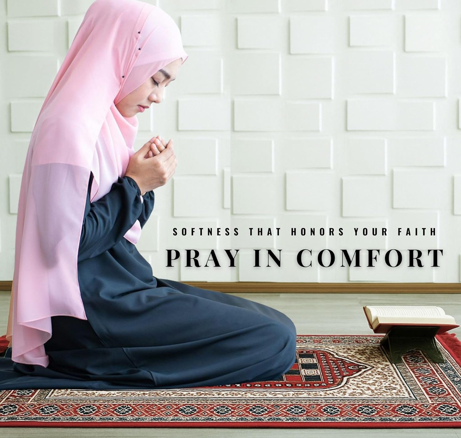 SOFT VELVET COMFORT – Gentle on the skin, offering cushioned support for your forehead and knees during long prayers.TRAVEL-FRIENDLY SIZE (44″ x 27″) – Compact, lightweight, and easy to fold; perfect for use at home, mosque, or on the go.ELEGANT LASER-CUT DESIGN – Adds a refined and decorative touch, making it a beautiful choice for your prayer space.MULTIPURPOSE & GIFT-READY – Ideal for Muslim prayers, Ramadan, Eid, Hajj, Umrah, or as a thoughtful Islamic gift.LIGHTWEIGHT & DURABLE – Built to last with fine craftsmanship, easy to carry and maintain for everyday use.