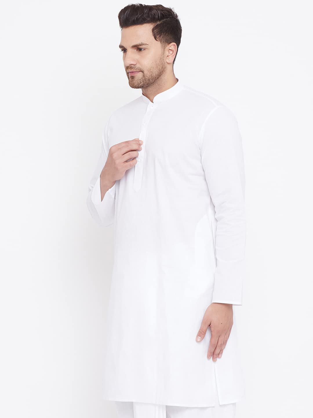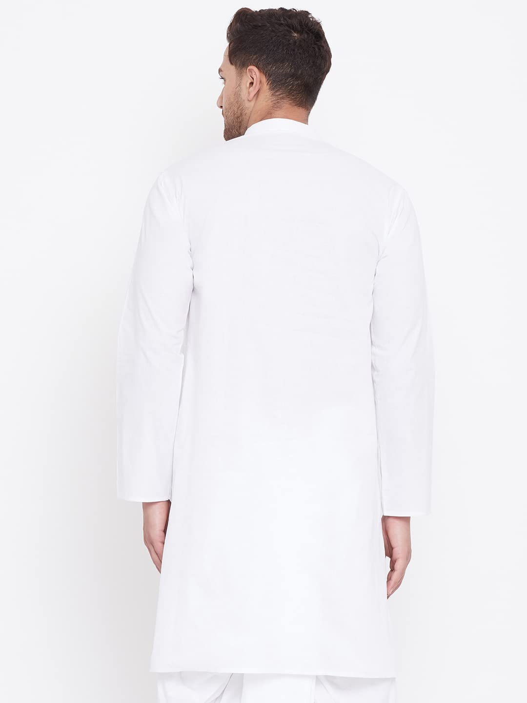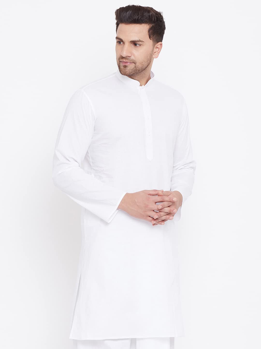 VASTRAMAY Men’s White Cotton Kurta | Classic White Cotton Kurta | Ethnic Wear for Festivals, Weddings