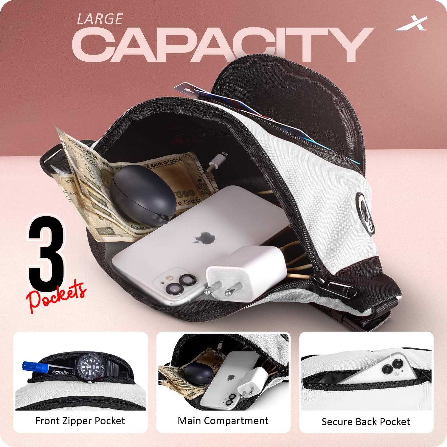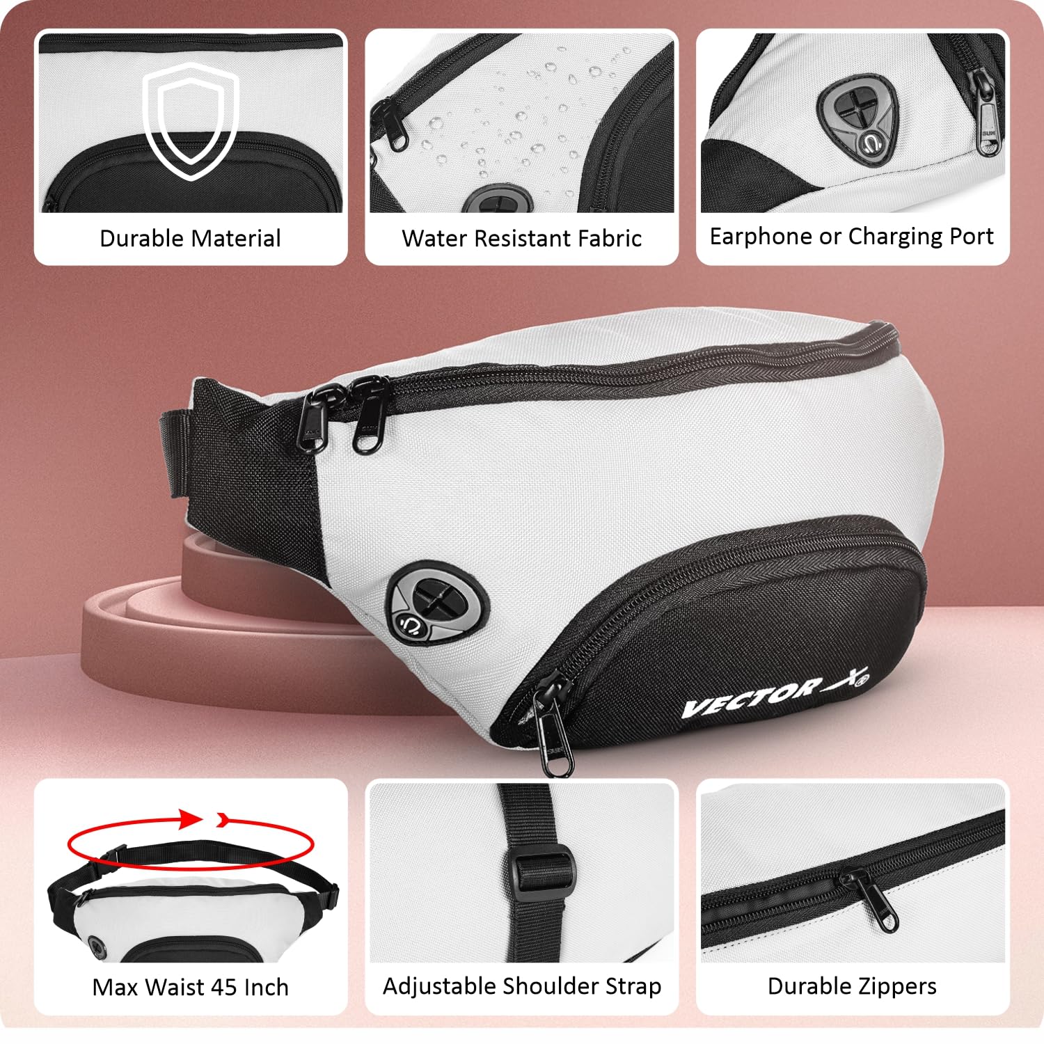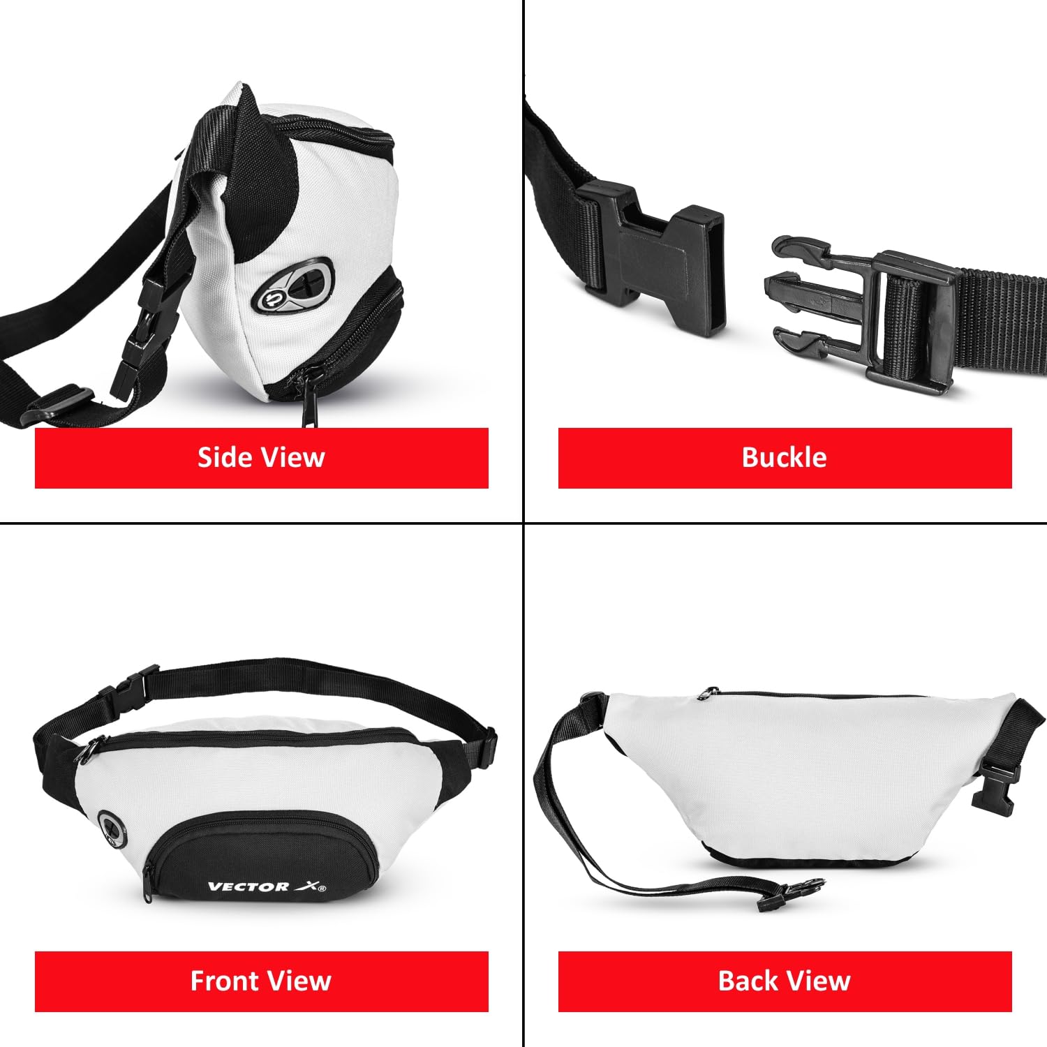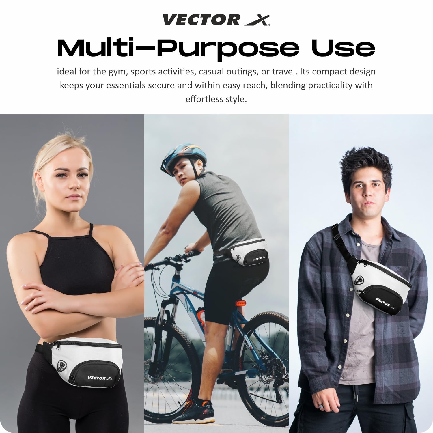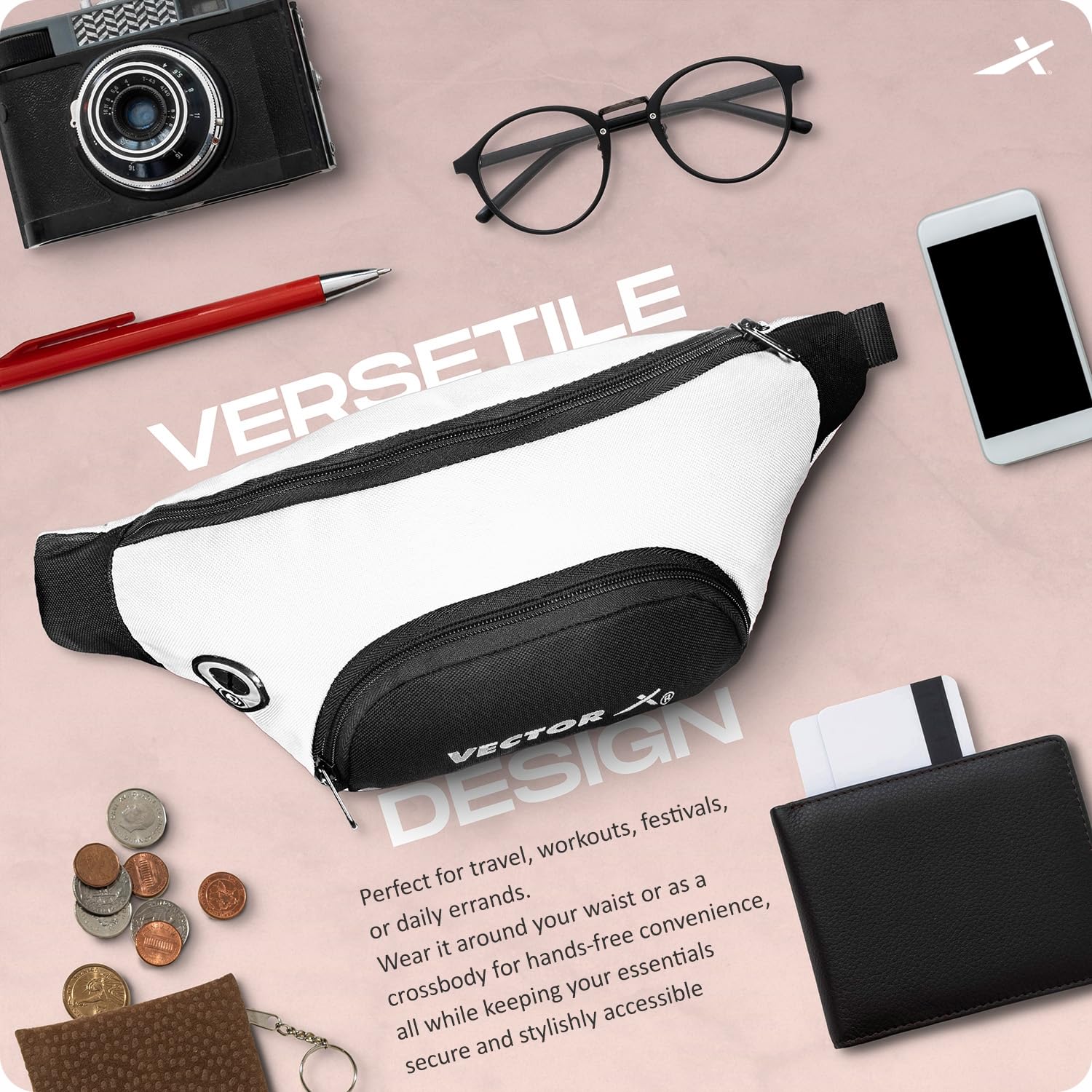 Vector X Stylish Waist Travel Hiking Chest/Fanny Bag with Adjustble Waist Belt, Pouch Sports Pack for Men and Women Premium Stitching, Handy,Versatile, Waterproof Bum Bag (White)