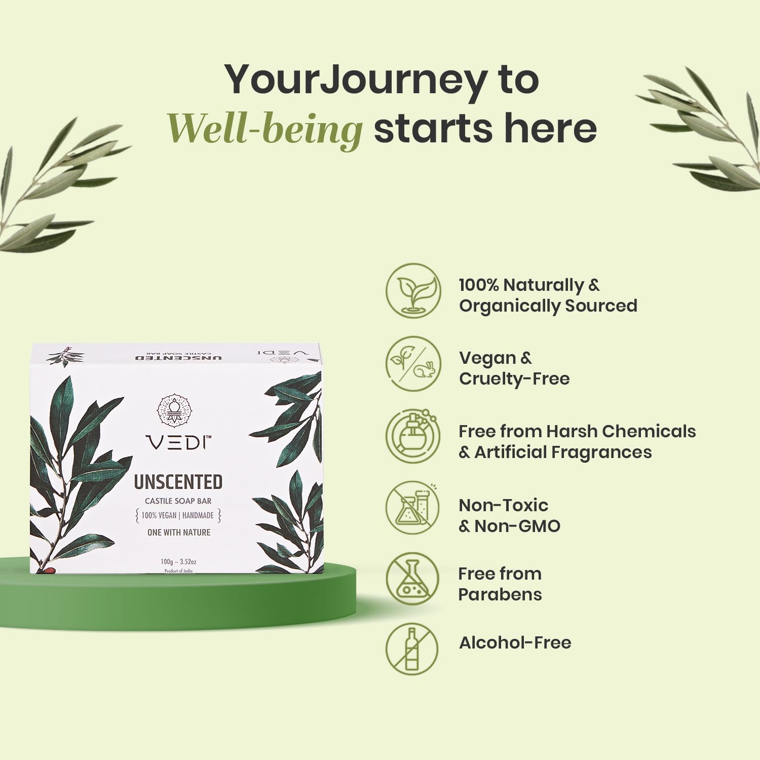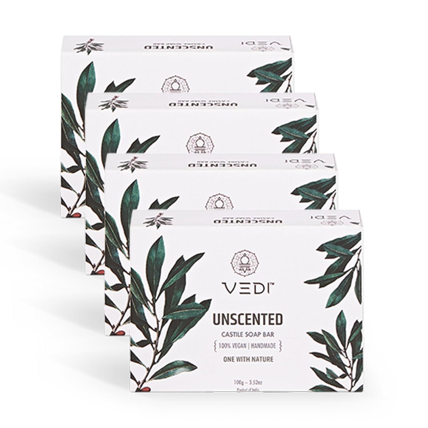 Vedi Unscented Castile Soap Bar 100g Pack of 4 | Hemp Based Handmade Bath Soap | Olive and Coconut Oil Formula | Gentle Moisturizing Cleanser | SLS and Paraben Free