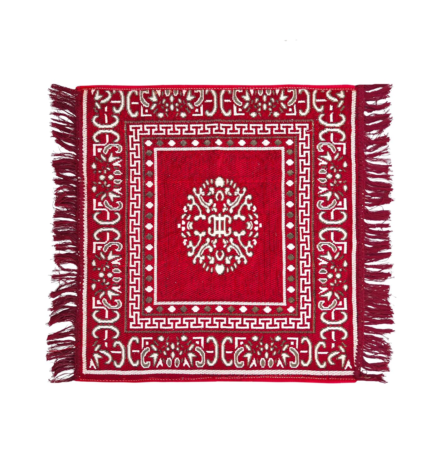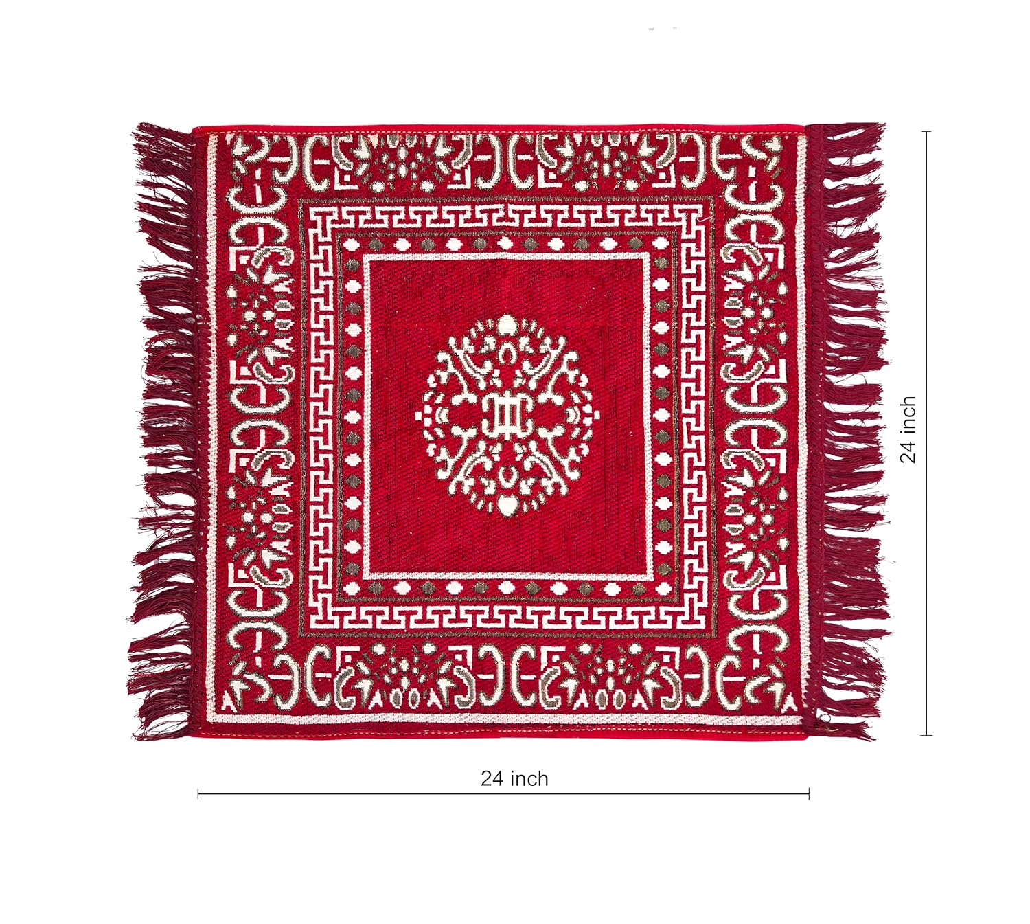 Velvet Motif Prayer Mat 2×2 Ft | Traditional Asana Pooja Mat for Sitting | Meditation Assan Mat | Multipurpose Area Rug, 62×62 cm – 24×24 Inches, Red
